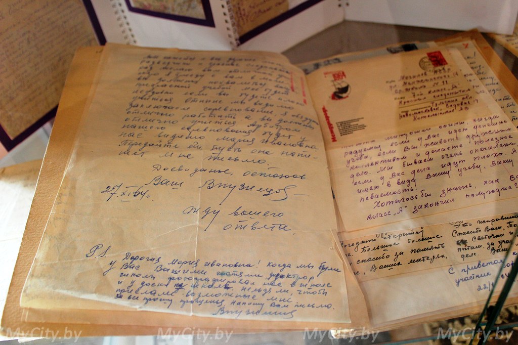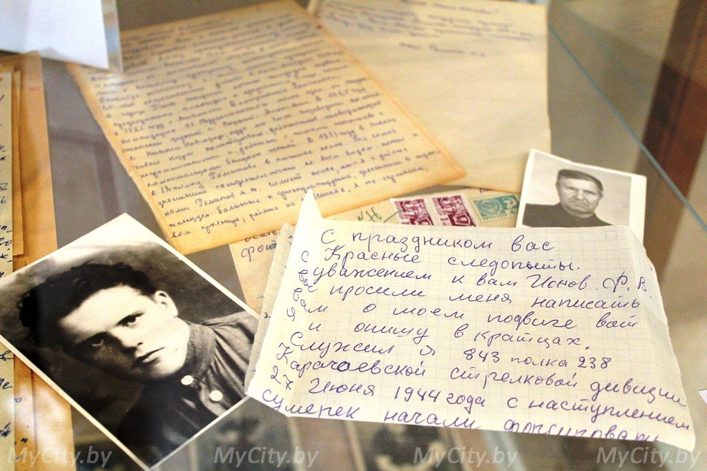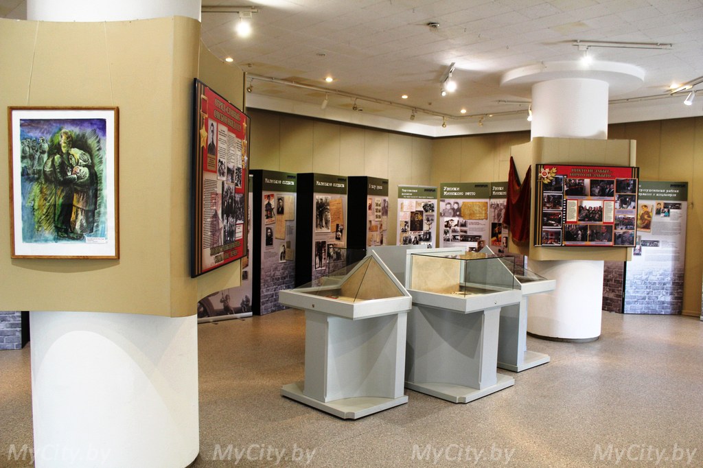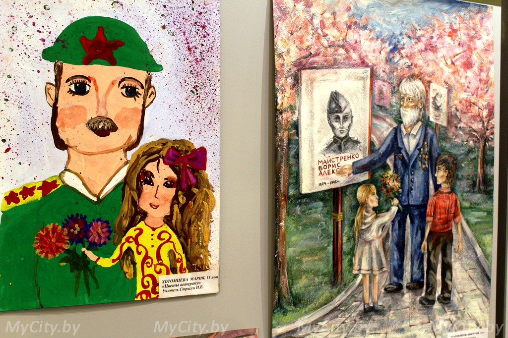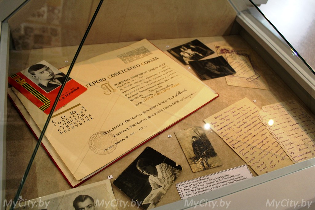 Как рассказала корреспонденту сайта старший научный сотрудник музея Александра Буракова, условно выставку можно разделить на несколько блоков. Здесь представлены стенды с фотографиями и документами, далее расположены рисунки учеников могилёвских художественных школ, материалы музеев средних школ №№ 5,11, 22, 32, 33 и 34 и экспонаты из фондов краеведческого музея.