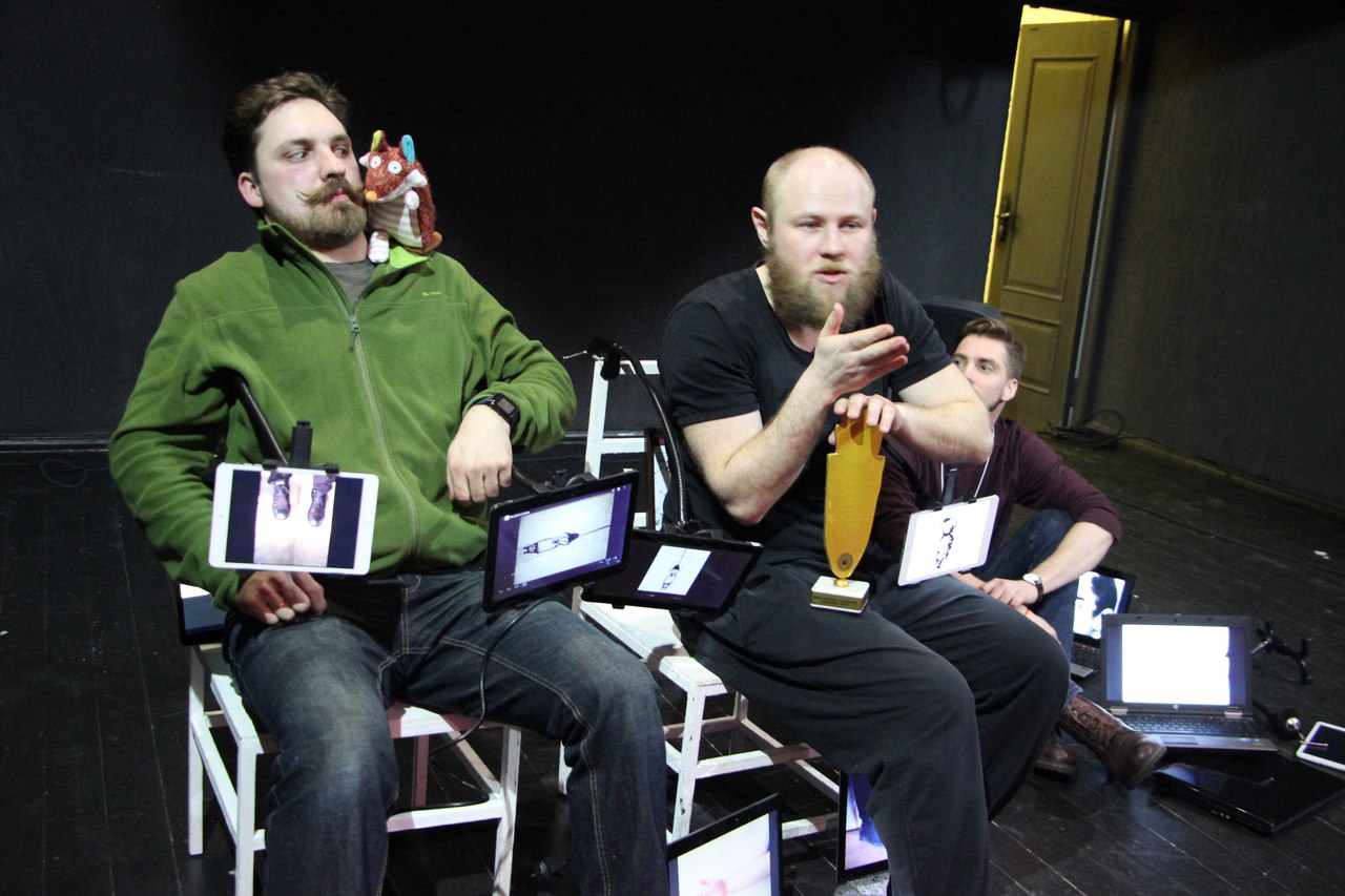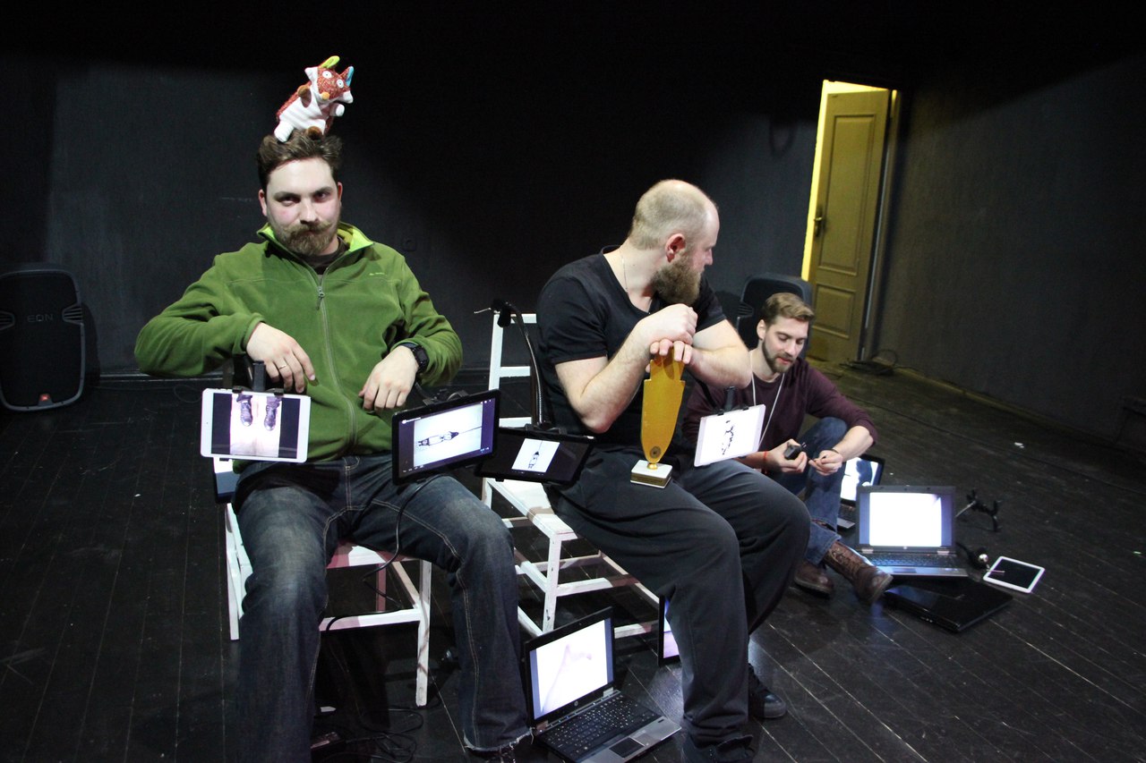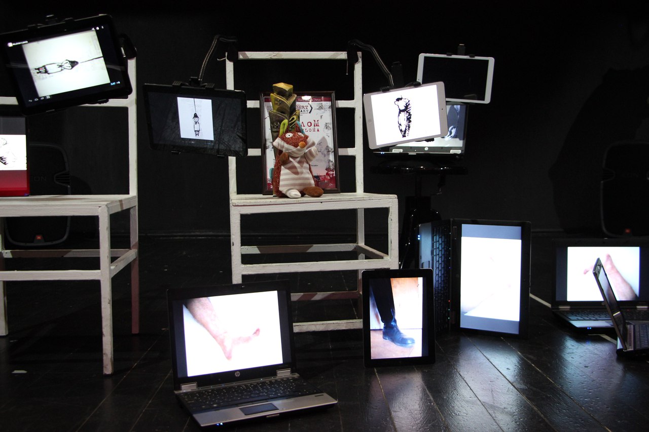 Пустая сцена, актёр и два героя — Чацкий и Грибоедов. Постепенно пространство заполняется предметами — не всегда осязаемые, они вместе с изображениями на ноутбуках и планшетах иллюстрируют до страшного похожие истории героев. Всё остальное — это воображение зрителя и способность сопоставить факты.