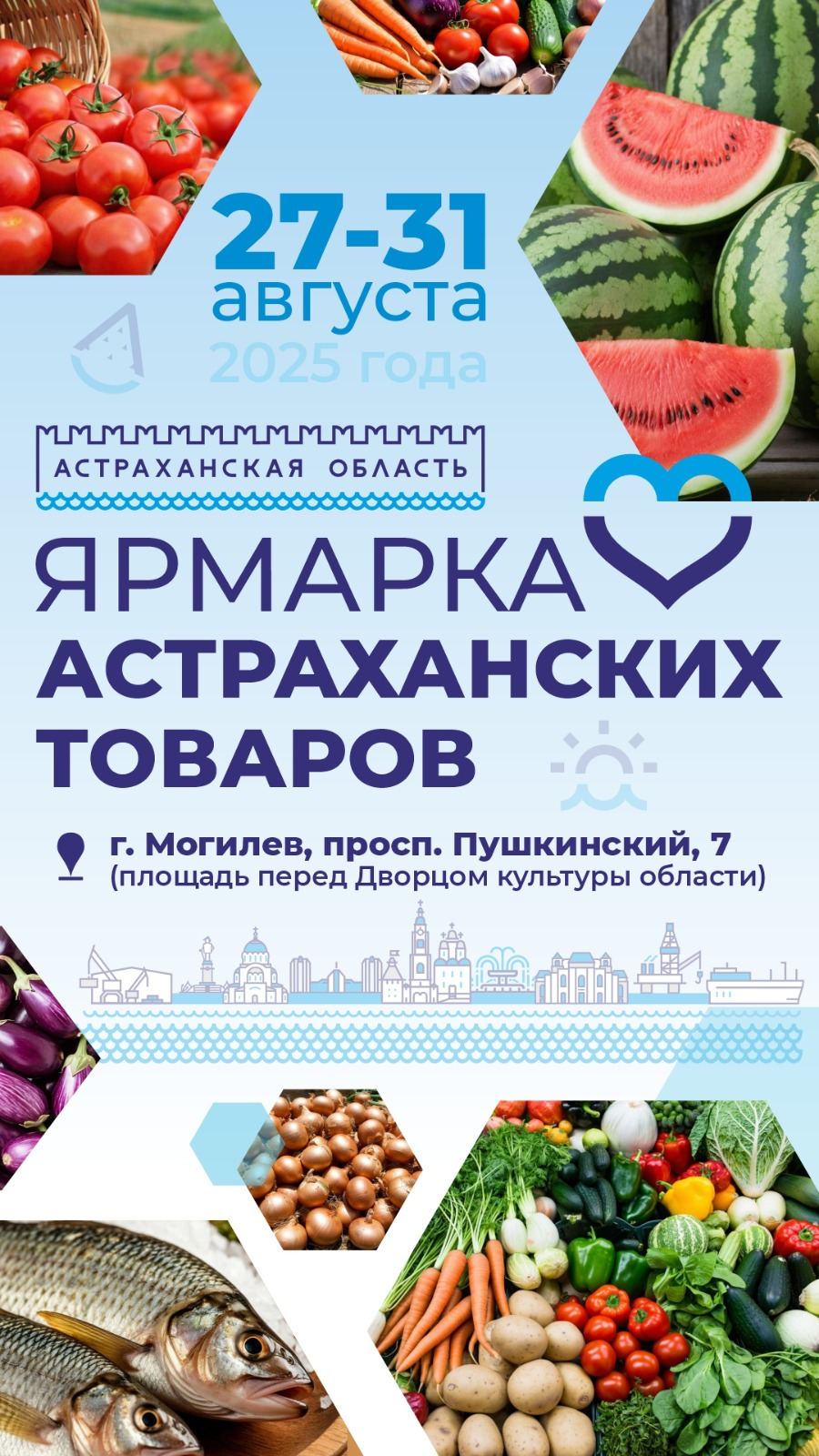Жителям Могилева предложат различные виды сельскохозяйственной продукции – знаменитые астраханские арбузы и помидоры, а также дыни, репчатый лук, баклажаны, кабачки, болгарский перец и др.