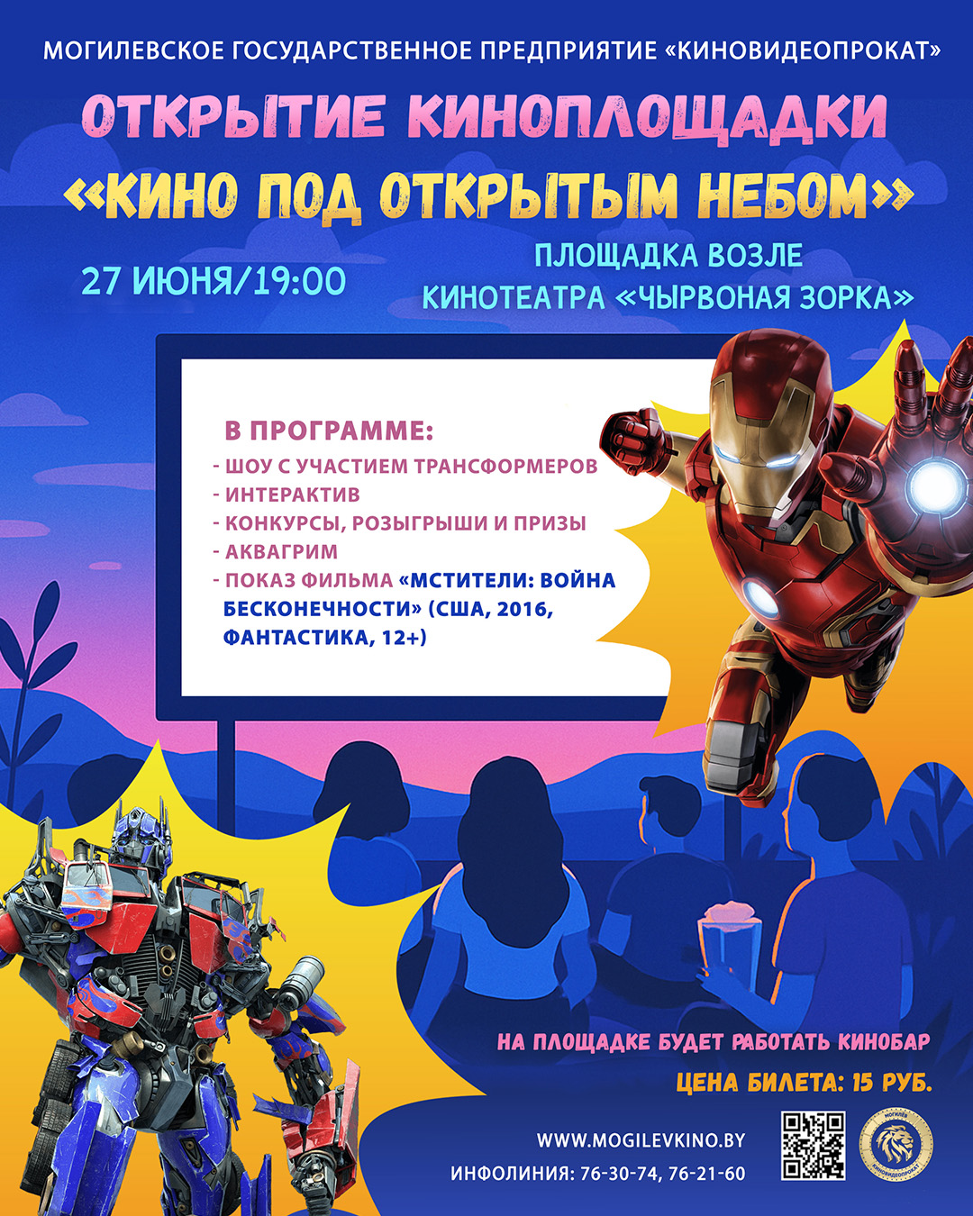 В программе мероприятия: шоу с участием трансформеров, интерактив, конкурсы, розыгрыши и призы, аквагрим, показ фильма «Мстители: Война бесконечности».