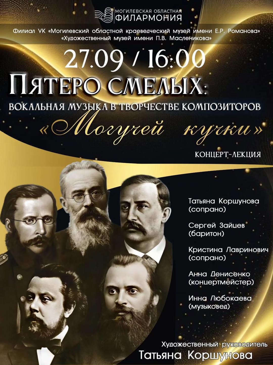 Концерт-лекция «Пятеро смелых: вокальная музыка в творчестве композиторов «Могучей кучки» состоится 27 сентября в художественном музее им. П.В.Масленикова.