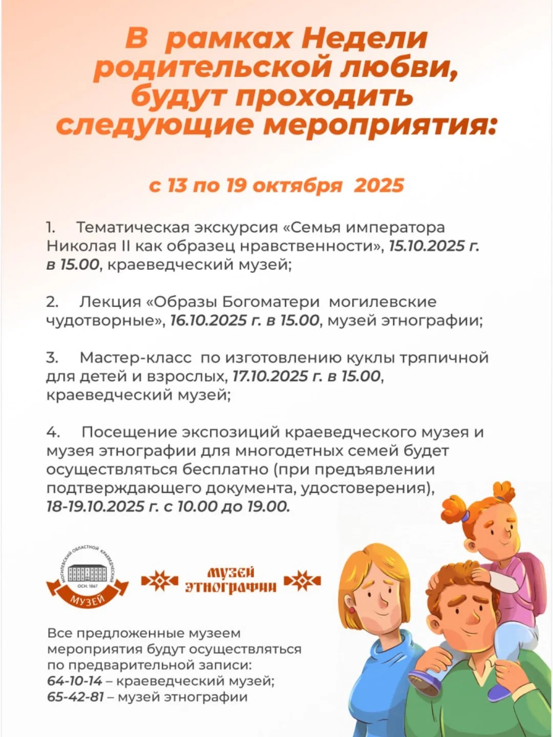 Тематические мероприятия, приуроченные к Неделе родительской любви, проведут с 13 по 19 октября Могилевский областной краеведческий музей им.Е.Р.Романова и музей этнографии.