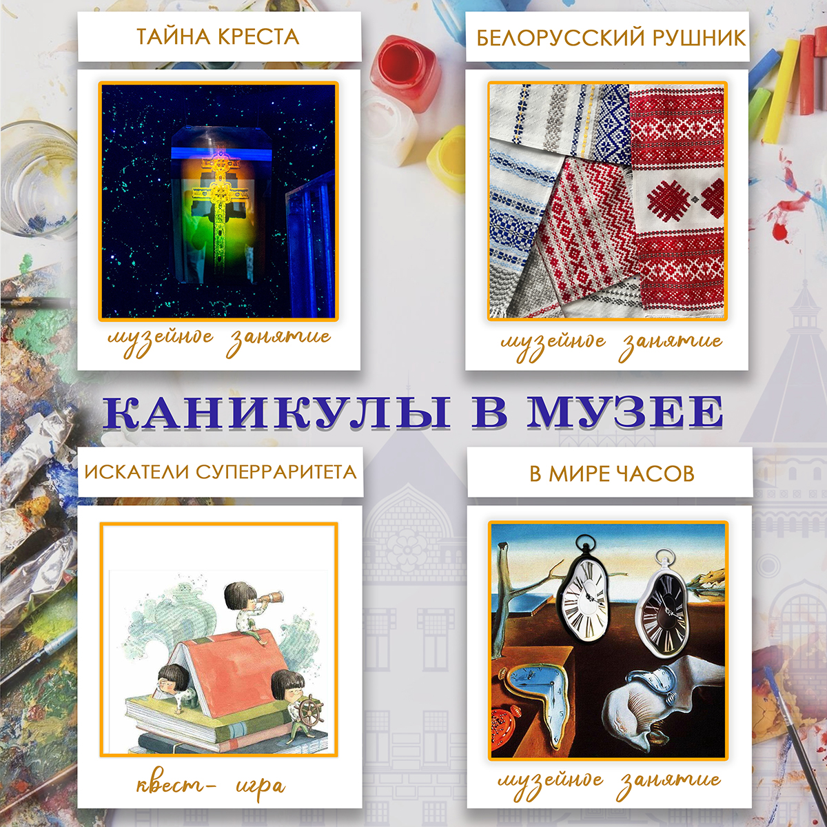 Для школьников в этот период организуют: музейные и интерактивные занятия с мастер-классом, а также экскурсии по постоянным и временным экспозициям. Так, юные могилевчане смогут посетить музейные занятия «Белорусский рушник», «В мире часов», «Тайна креста», стать участниками квест-игры «Искатели суперраритета».