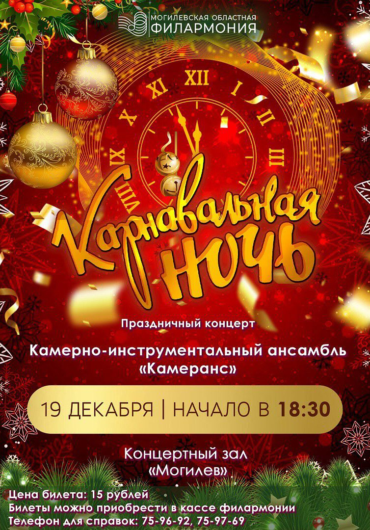 Концерт «Карнавальная ночь» пройдет в Могилеве 19 декабря. Программа будет представлена на сцене КЗ «Могилев» (ул.Первомайская, 10).