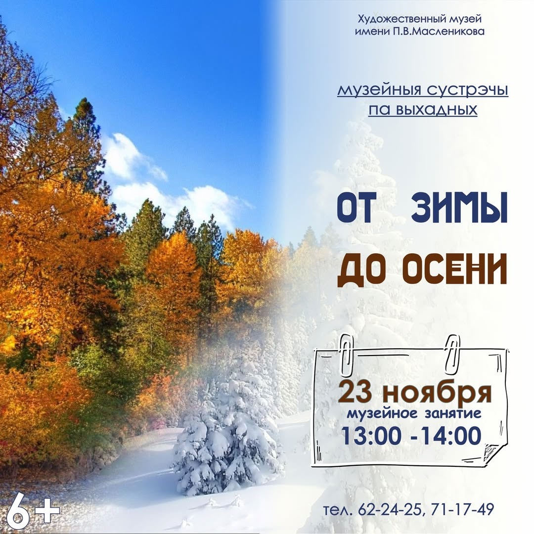 Музейное занятие «От зимы до осени» состоится в воскресенье, 23 ноября, в Художественном музее им. П.В.Масленикова (ул.Миронова, 33).