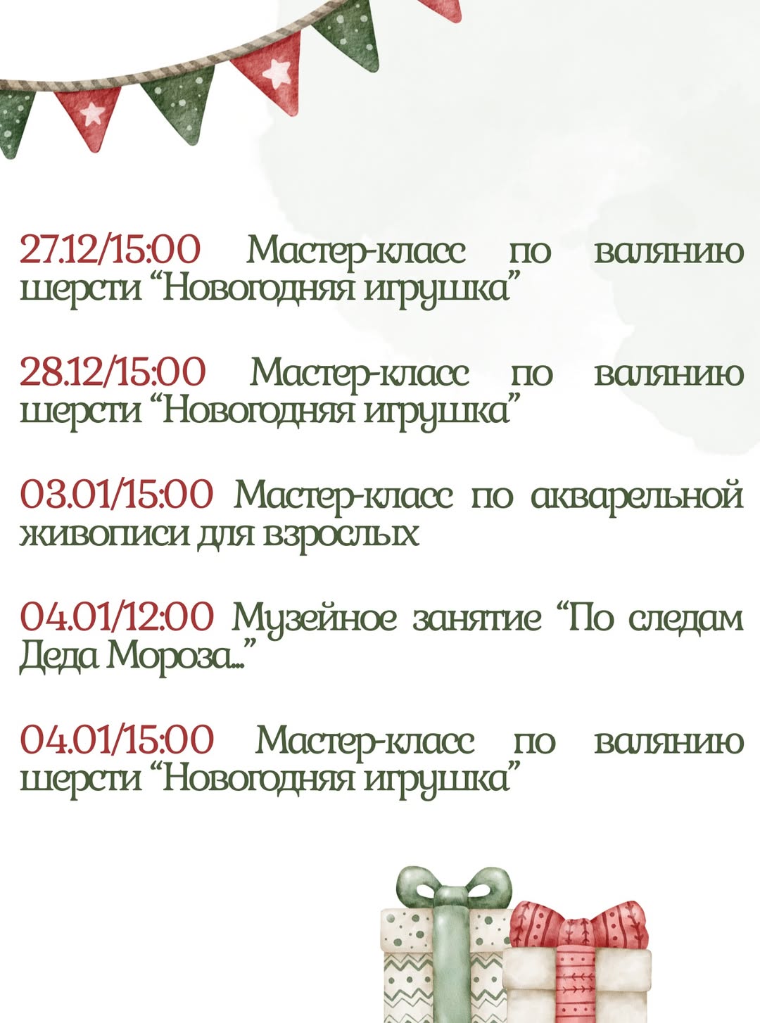 – 4 января – музейное занятие «По следам Деда Мороза»;