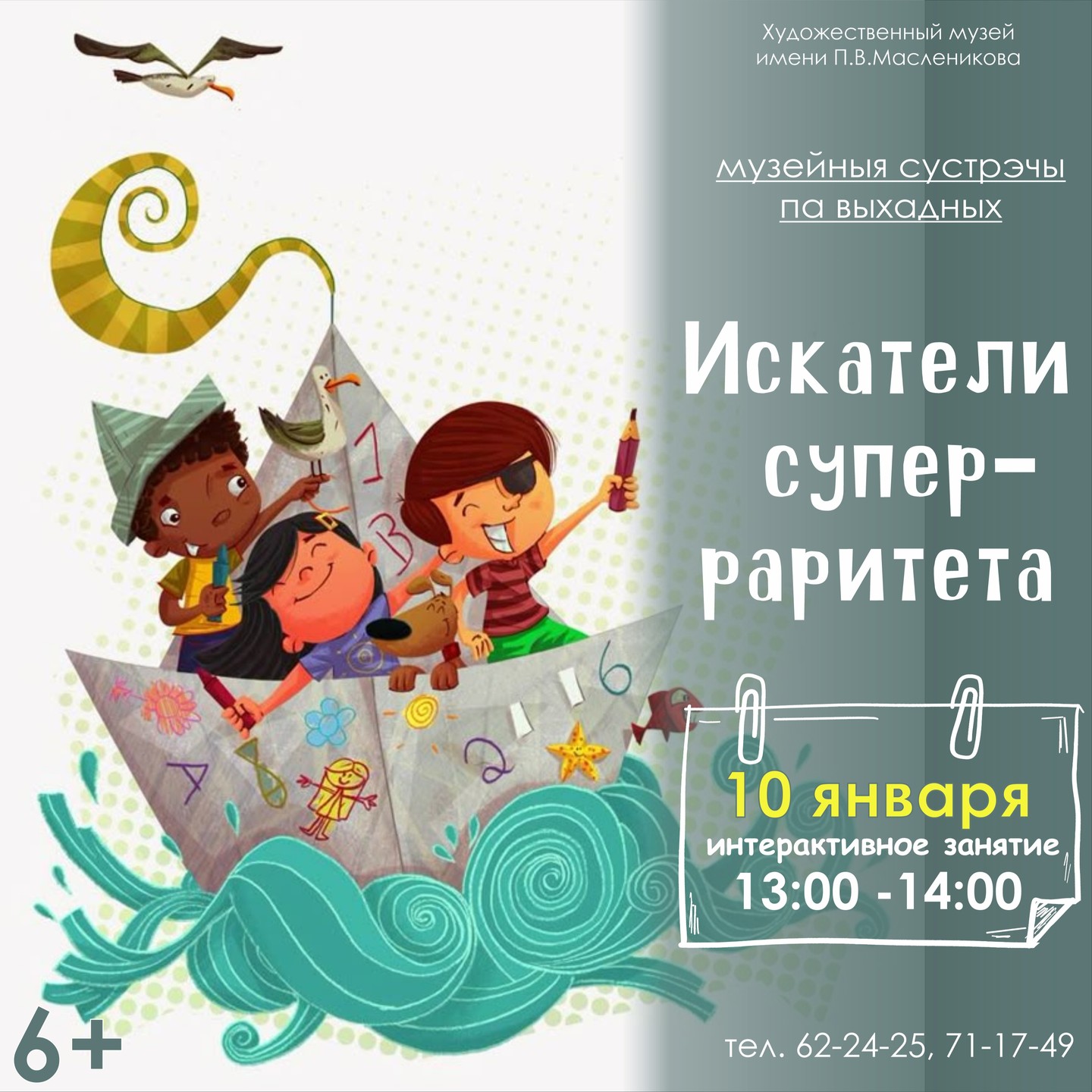 Так, в субботу, 10 января, в учреждении культуры состоится квест-игра «Искатели суперраритета». В рамках мероприятия пройдет экскурсия по галерее П.В.Масленикова, во время которой юные могилевчане узнают о творчестве художника, увидят его картины, побывают в его мастерской, а после им предстоит выполнить ряд заданий и найти загаданный предмет, который и является суперраритетом. Начало мероприятия в 13:00.