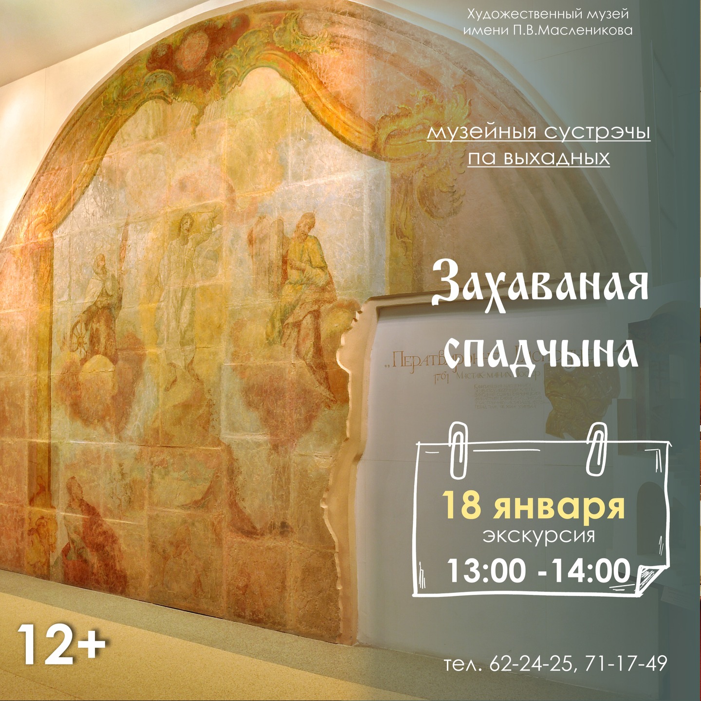 В воскресенье, 18 января, в музее пройдет экскурсия по постоянно действующей экспозиции «Сохраненное наследие», на которой могилевчанам расскажут о старинных книгах, фресках и иконах, также будет возможность посетить таинственную комнату-сейф. Начало в 13:00.