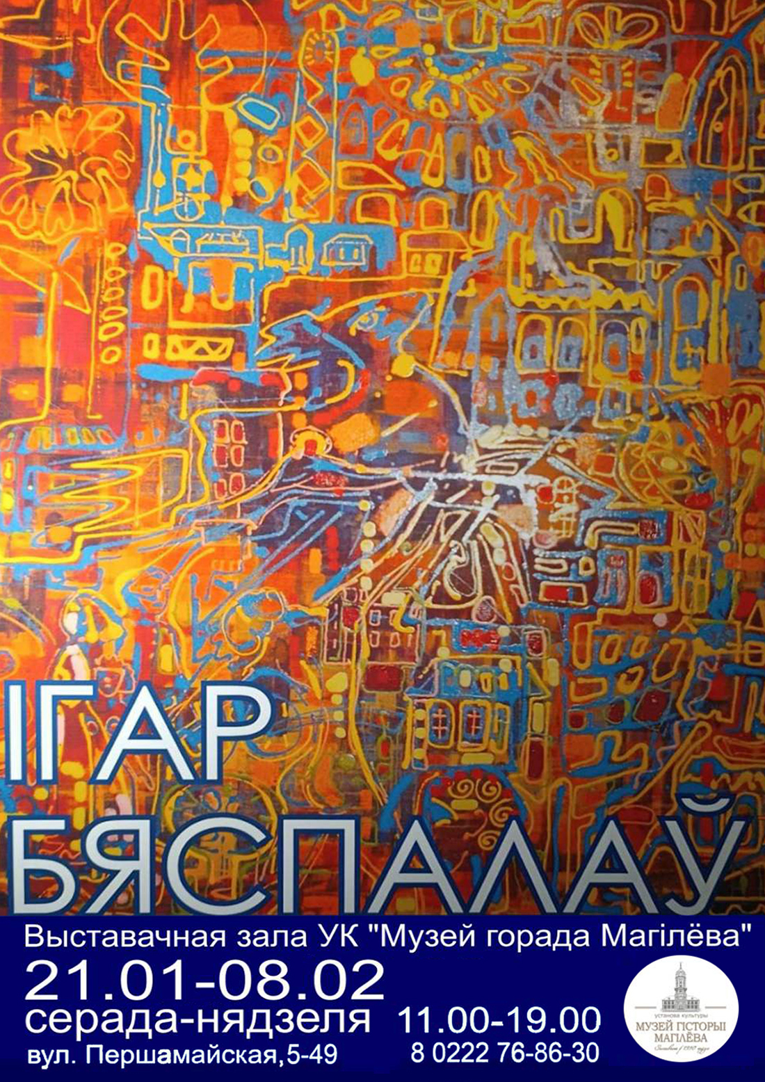 Персональная выставка Игоря Беспалова начнет работу 21 января в выставочном зале Музея истории Могилева (ул.Первомайская, 5-49). В экспозиции будут представлены более 40 произведений могилевского художника-авангардиста.