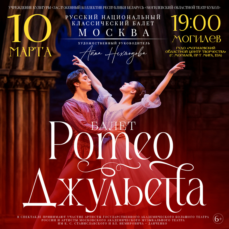 Театр «Национальный Классический Балет» (г.Москва) под руководством Анны Нехлюдовой представит в Могилеве балет «Ромео и Джульетта» – самый известный балет композитора Сергея Прокофьева по одноименной трагедии Уильяма Шекспира.