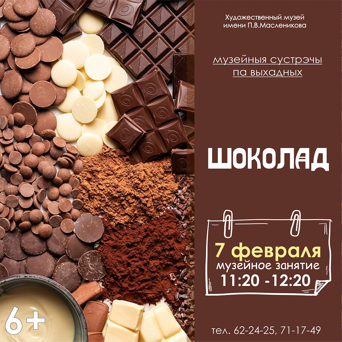 В субботу, 7 февраля, в учреждении культуры запланировано музейное занятие «Шоколад» (6+). Во время мероприятия его участникам расскажут о том, какое отношение к шоколаду имеют индейцы, как его готовят, где он растет, почему это лакомство было доступно не для всех и как его правильно выбрать, а также о том, как «пища богов» повлияла на мировую культуру. Начало занятия в 11:20.