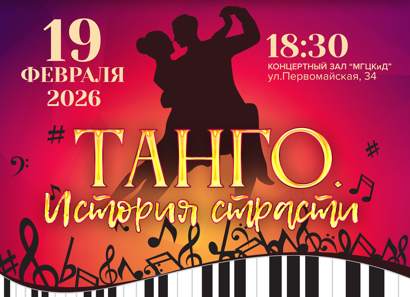 Как рассказали в учреждении культуры, концертная программа «Танго. История страсти» раскроет всю глубину этой темпераментной музыки, а также даст возможность проследить историю развития жанра на протяжении трех столетий — от меланхоличных песен, рожденных на улочках Буэнос-Айреса, до эффектных современных композиций, когда этот танец становится популярным видом искусства.
