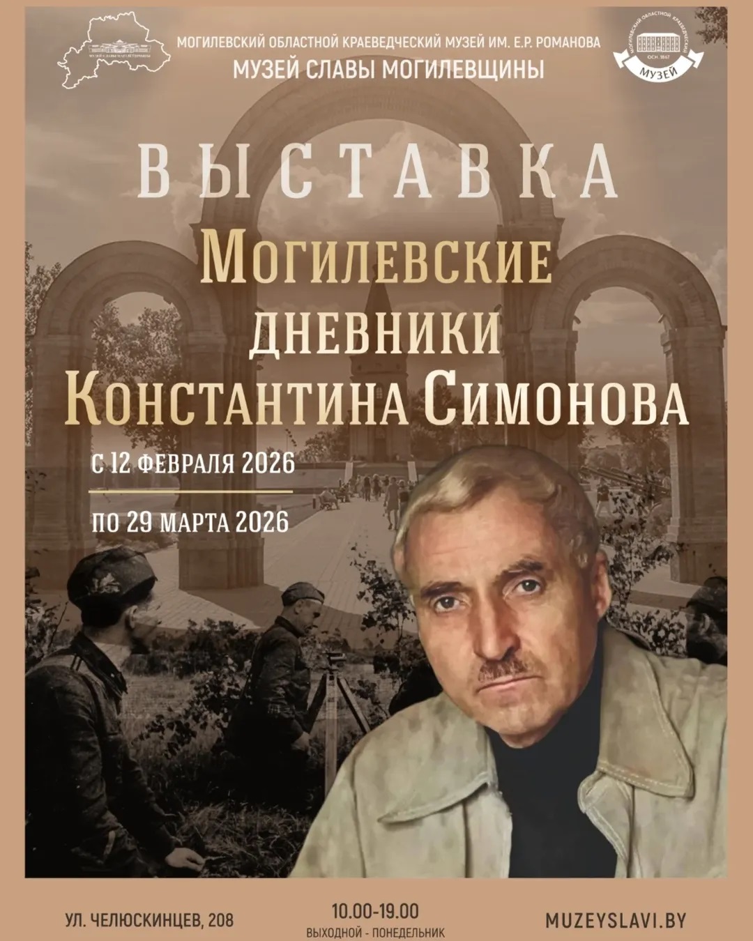 Выставка «Могилевские дневники Константина Симонова» начнет работу 12 февраля в Музее Славы Могилевщины (ул.Челюскинцев, 208).