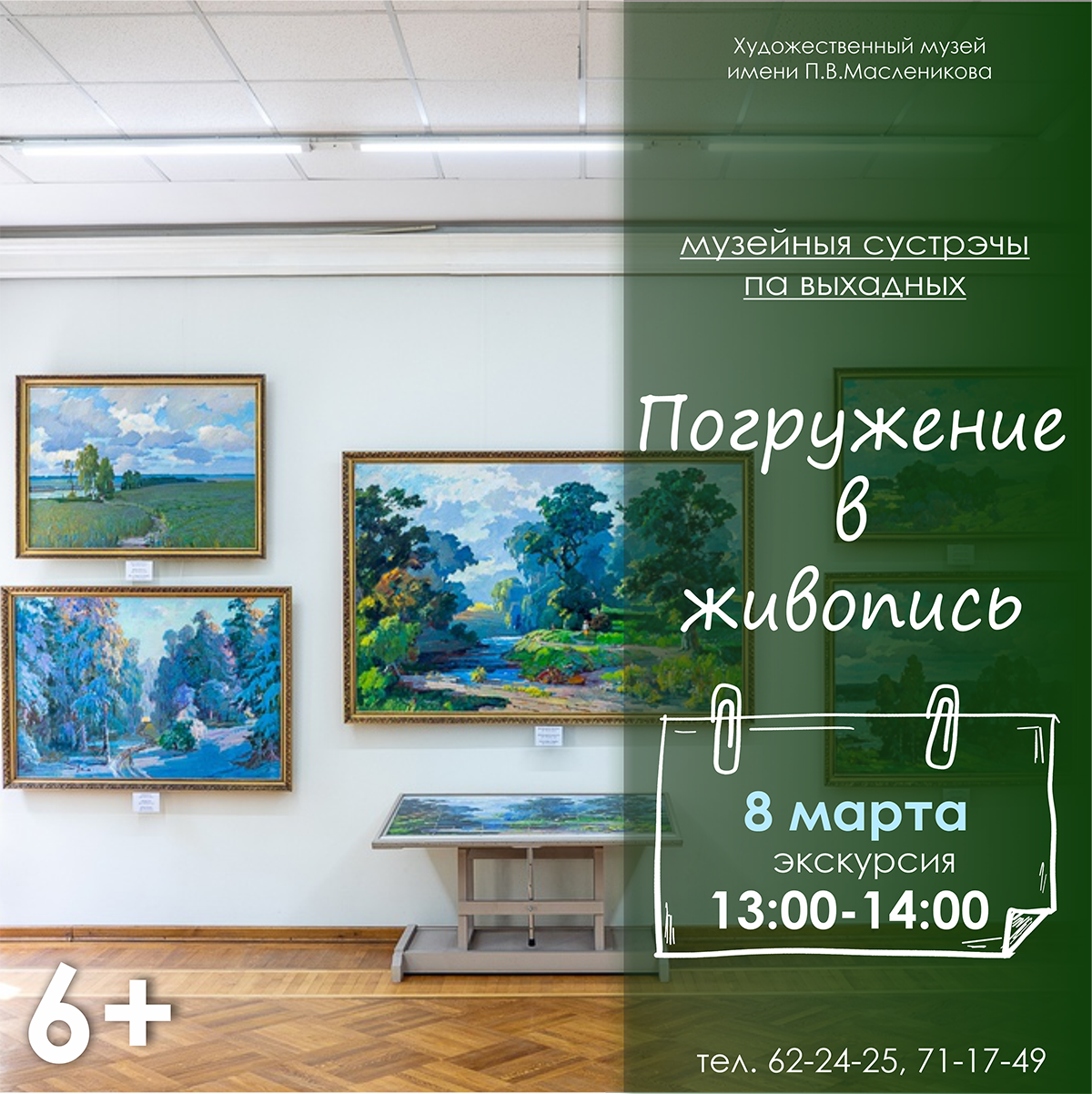 В воскресенье, 8 марта, могилевчан приглашают на экскурсию по картинной галерее П.В.Масленикова, во время которой работники учреждения культуры расскажут о процессе создания живописных произведений, увлекательном творческом пути мастера и особенностях его художественной манеры. Начало в 13:00.