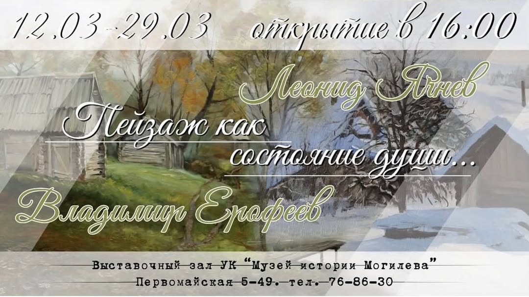 Выставочный проект «Пейзаж как состояние души» начнет работу 12 марта в выставочном зале Музея истории Могилева (ул.Первомайская, 5-49).