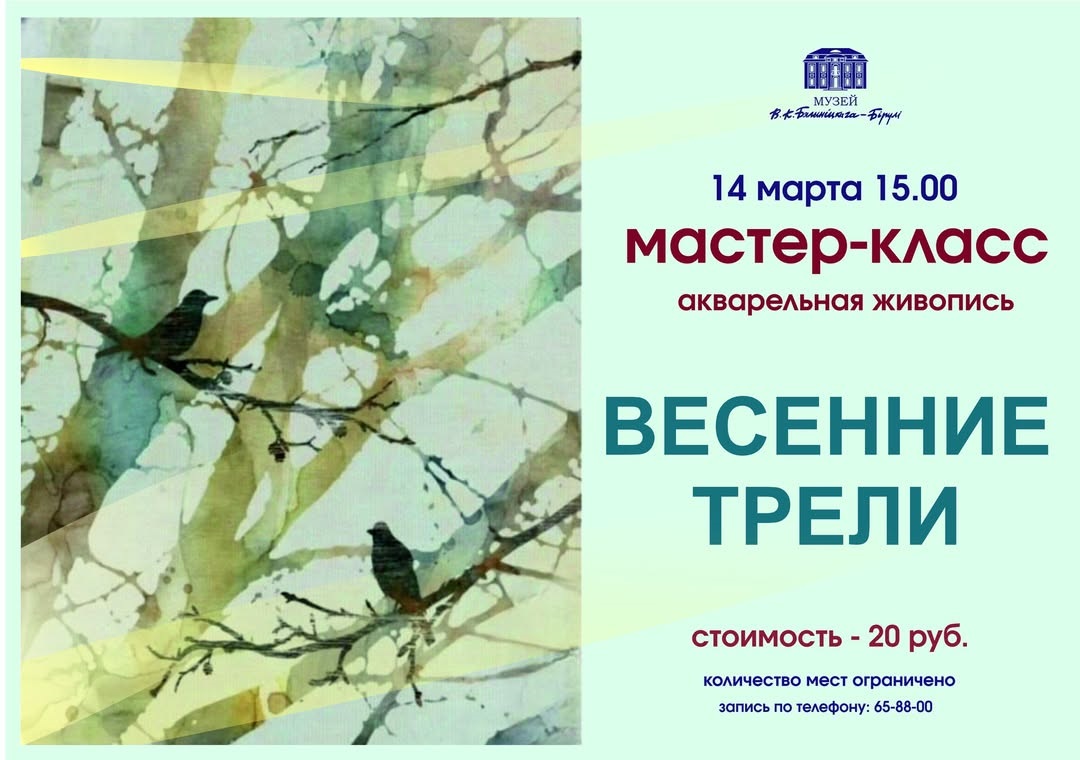 Мастер-класс по акварельной живописи «Весенние трели» пройдет в субботу, 14 марта, в музее В.К.Бялыницкого-Бирули (ул.Ленинская, 37).