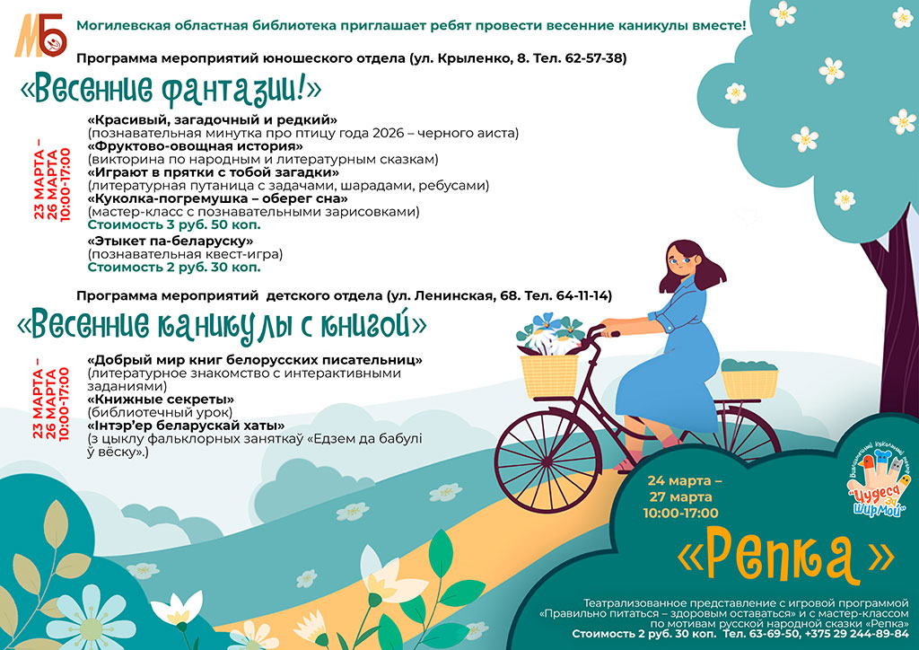Могилевская областная библиотека им. В.И. Ленина подготовила для юных горожан увлекательные и познавательные мероприятия в рамках весенней программы.