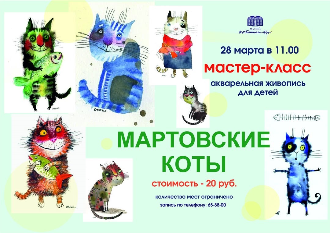 Мастер-класс по акварельной живописи для детей «Мартовские коты» пройдет в Могилеве 28 марта в музее В.К.Бялыницкого-Бирули (ул.Ленинская, 37).
