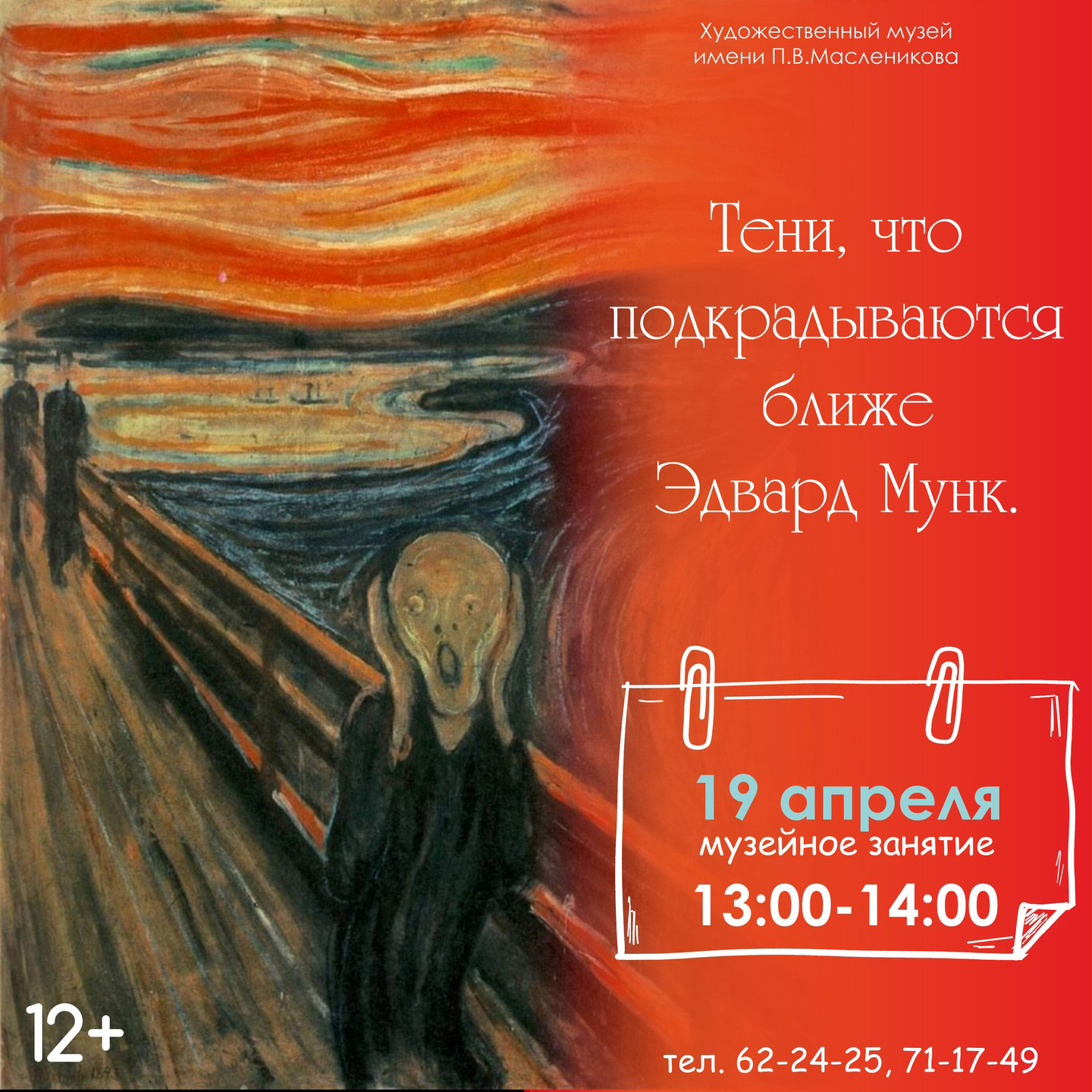 В воскресенье, 19 апреля, пройдет музейное занятие «Эдвард Мунк. Тени, что подкрадываются ближе». Могилевчане узнают о жизненном и творческом пути самого яркого представителя экспрессионизма в европейской художественной традиции; познакомятся с его работами, а также проследят отличительные черты стиля художника. Начало в 13:00.