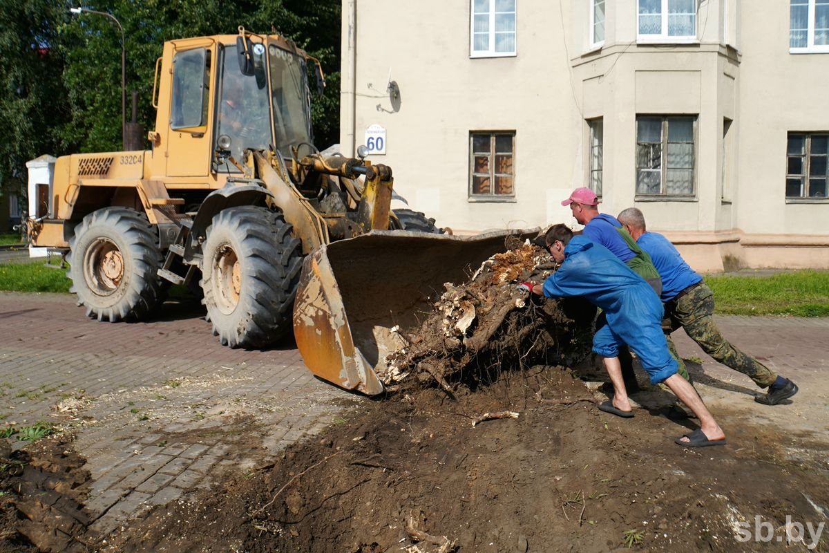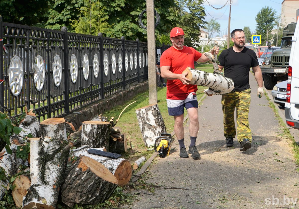 Работы при этом хватило всем — люди наводили порядок на придомовых и призаводских территориях, возле дошкольных и учебных заведений. Поскольку ураган повредил в Могилеве порядка 5 тысяч деревьев, то основные работы касались распилки поваленных растений, погрузки поленьев на технику, уборки веток. Бензопилы до сих пор жужжат по всему городу.