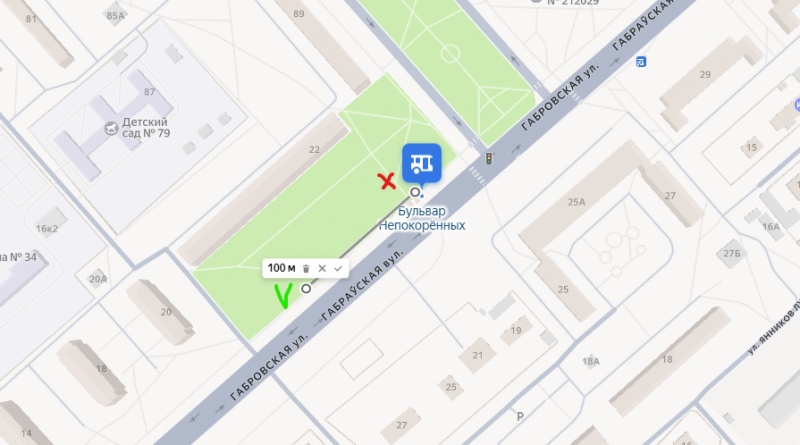 Остановку «Бульвар Непокоренных» по ул. Габровской в сторону пр-та Шмидта временно перенесут. Об изменениях проинформировал Троллейбусный парк №1.