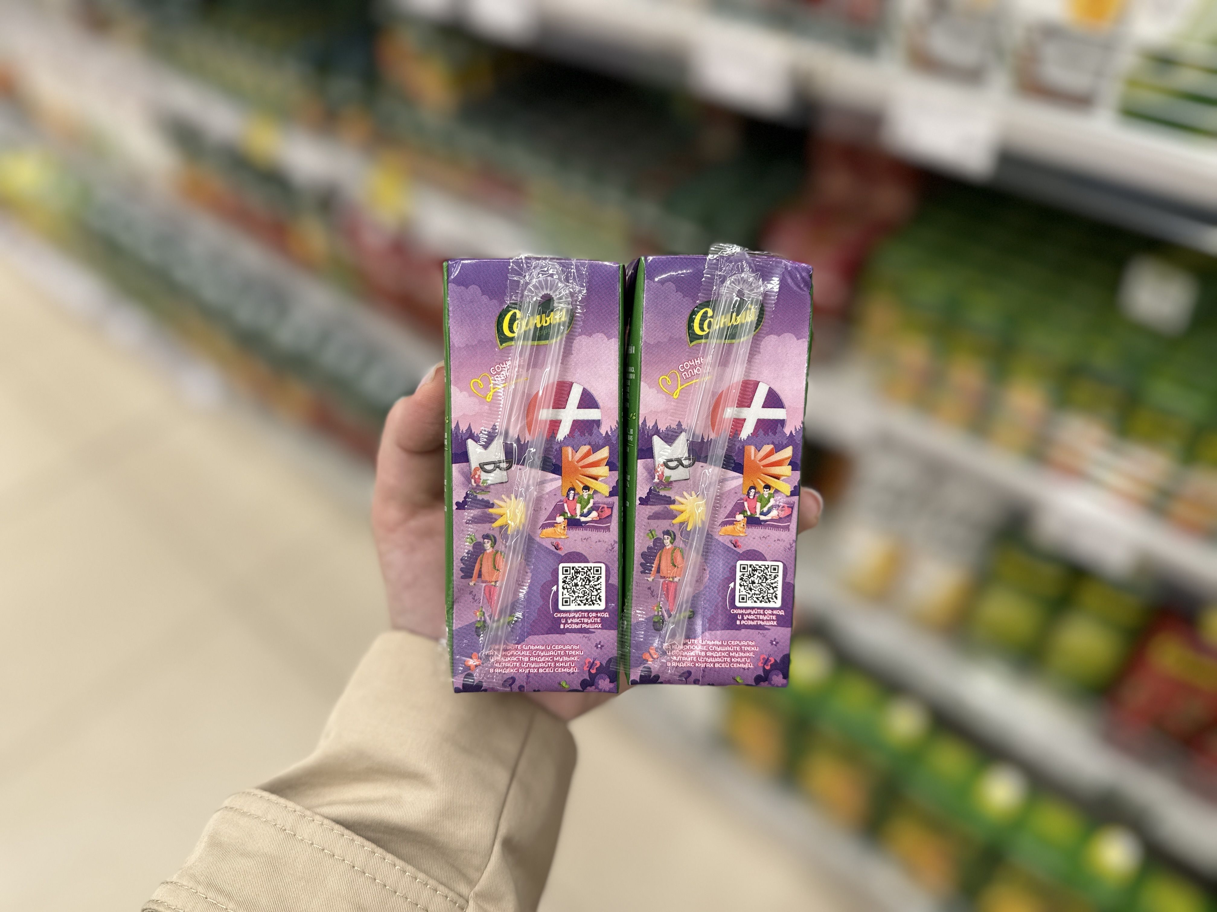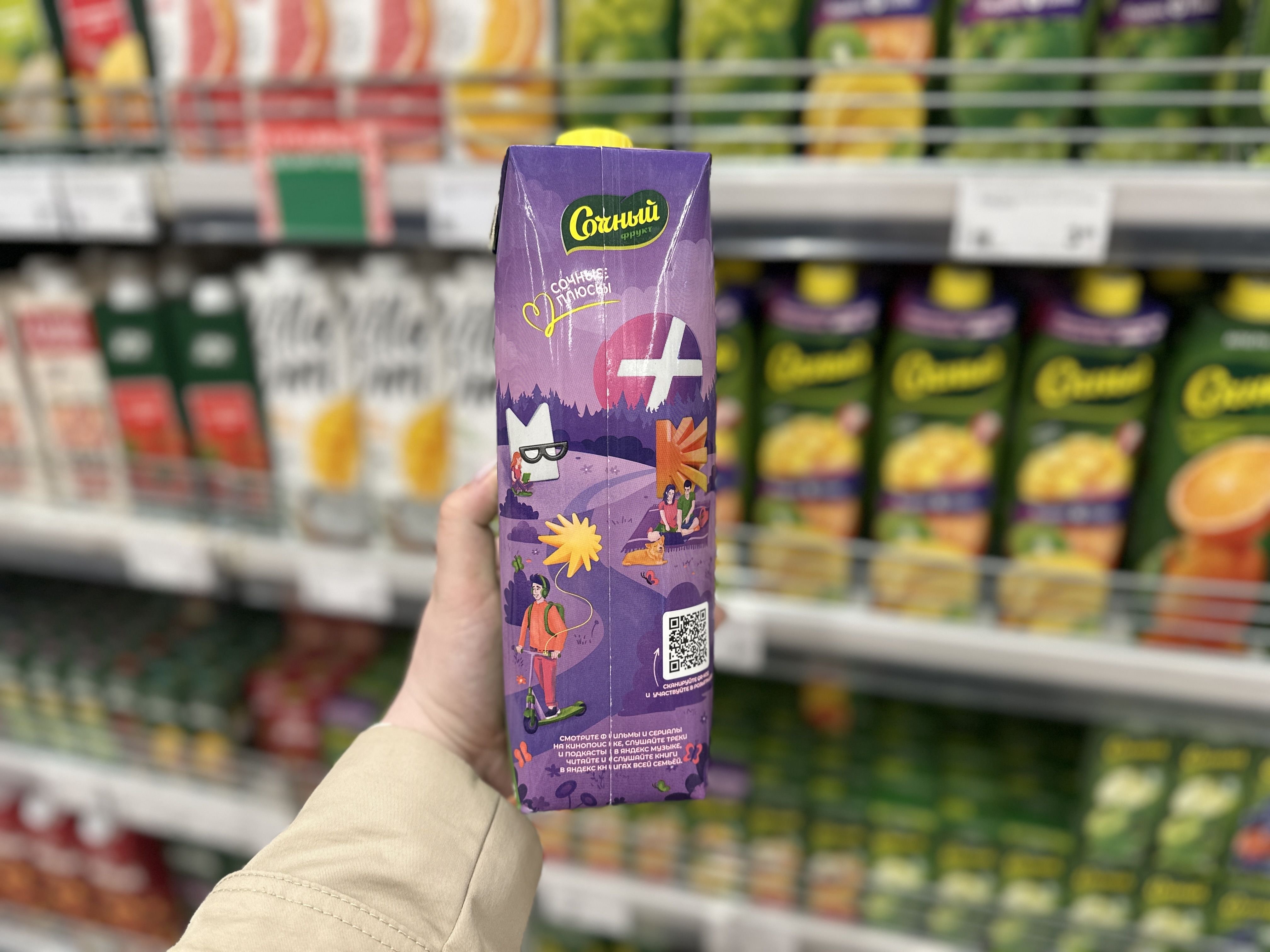 «Сочный» и Яндекс Плюс выпустили соки со специальными упаковками. На них нанесены QR-коды с 60-дневной подпиской на кино, музыку и книги. Среди покупателей также разыграют автомобиль Belgee X50 и другие призы.