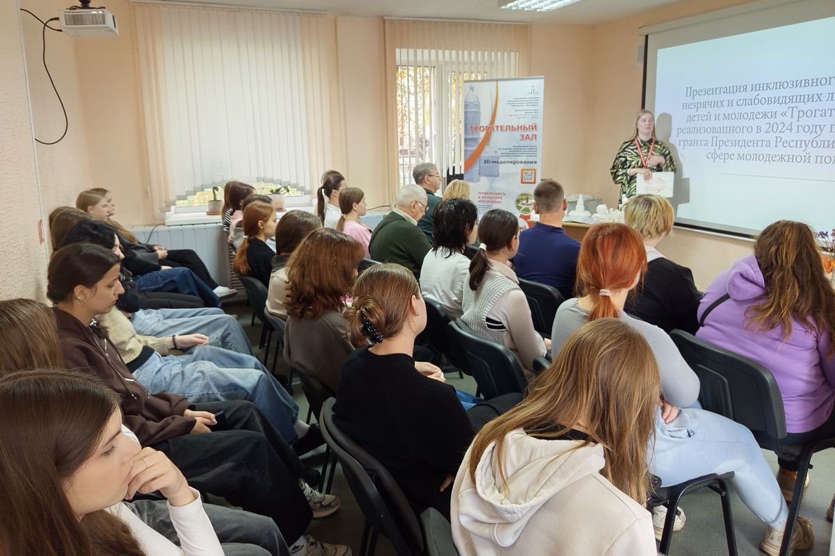 Во время мероприятия речь шла о социальной поддержке инвалидов по зрению, особенностях жизни незрячих людей, этических нормах общения, о том, как взаимодействовать с такими людьми, оказать ситуационную помощь и др. Также состоялась презентация инклюзивного проекта «Трогательный зал», который позволяет незрячим прикоснуться к культуре и истории через 3D-модели архитектурных памятников Беларуси.