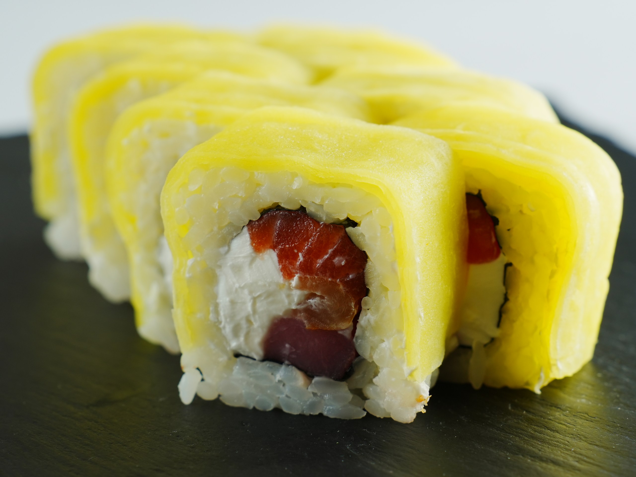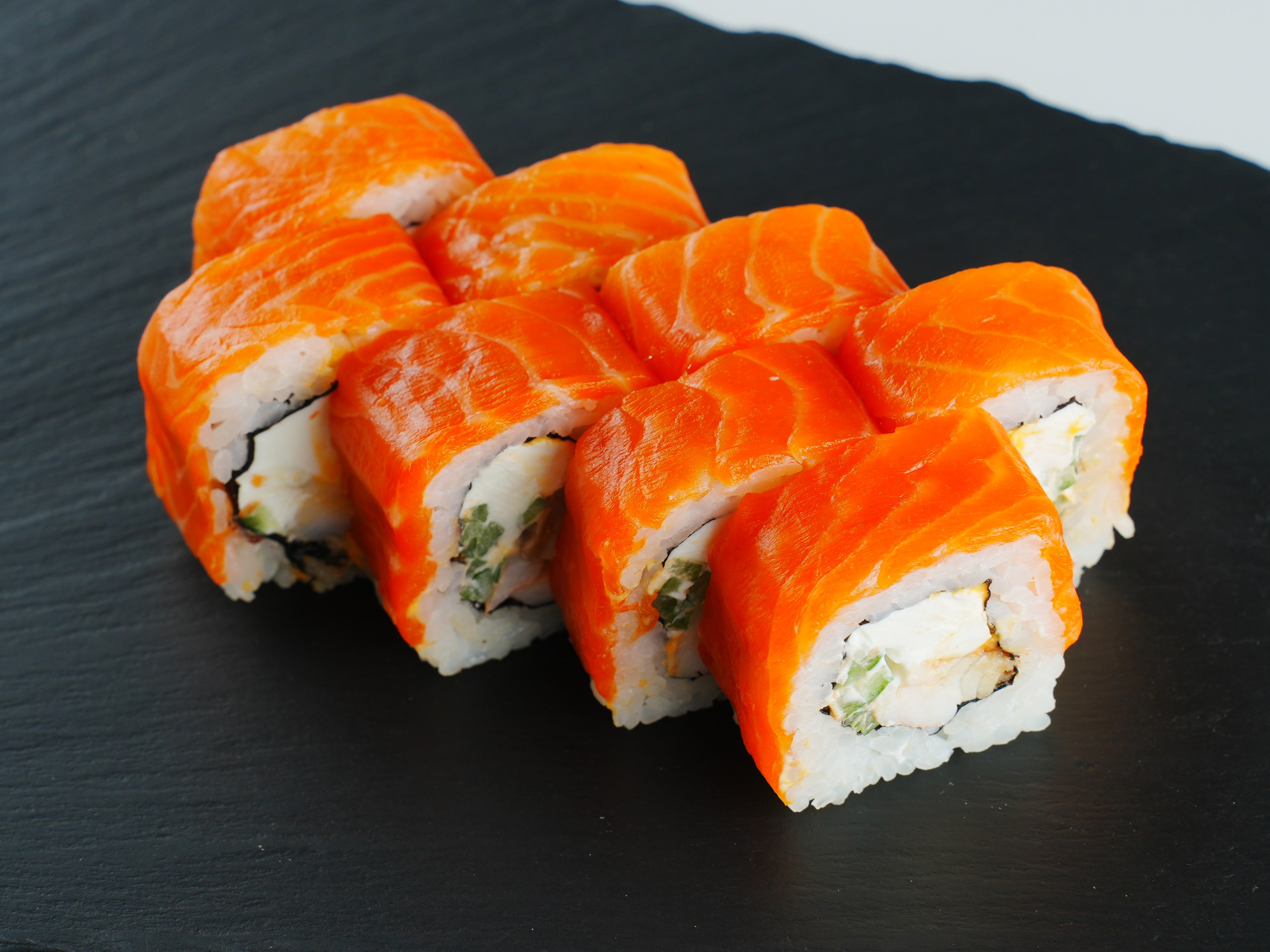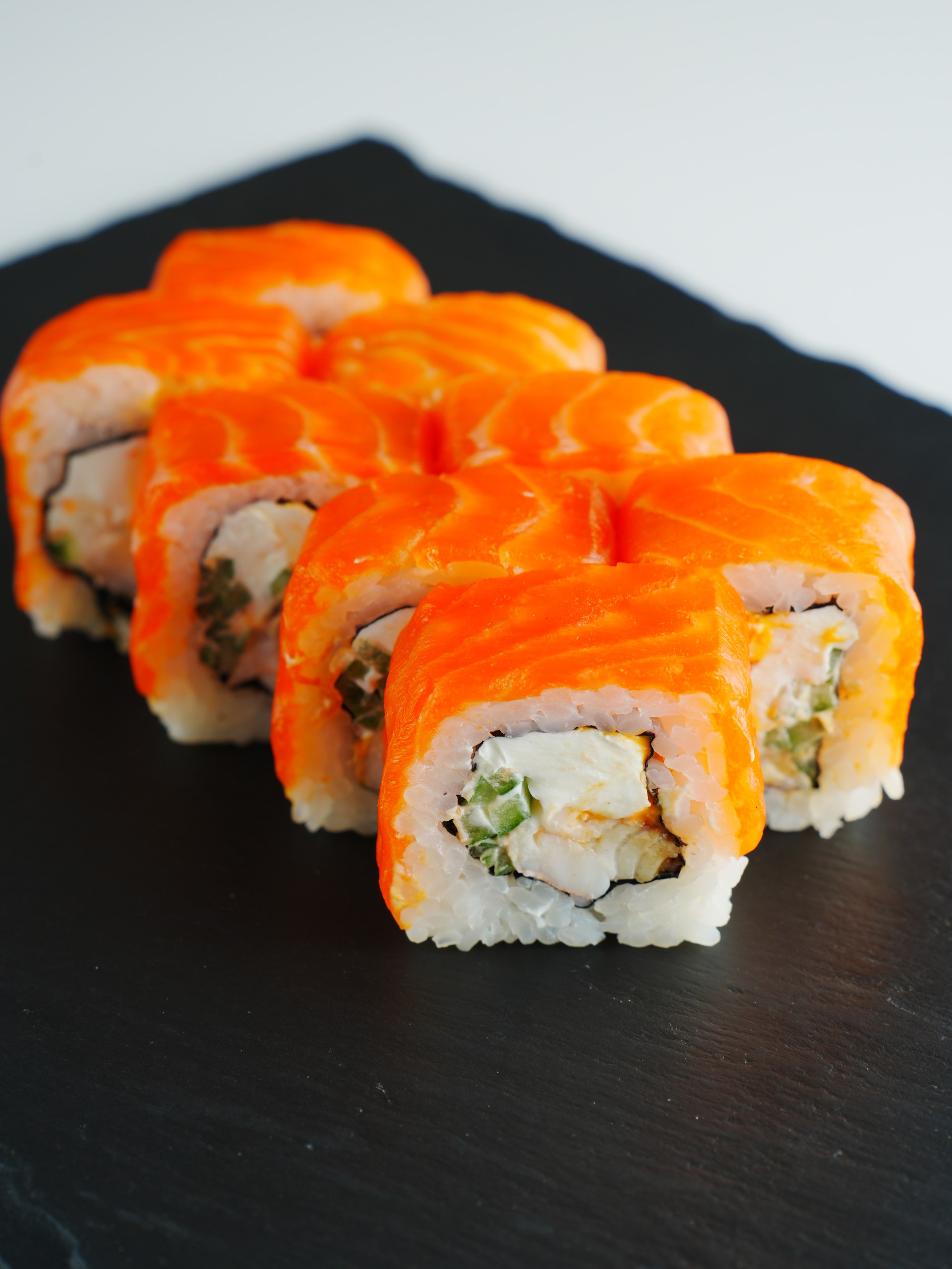Роллы «Пиканто» придутся по вкусу тем, кто любит острое. К угрю, тигровой креветке, копченому лососю прилагается спайси соус. Неожиданную нотку привносит свежий огурец. Вес порции — 275 грамм, а стоит она 21 рубль (четыре ролла — 11 рублей)