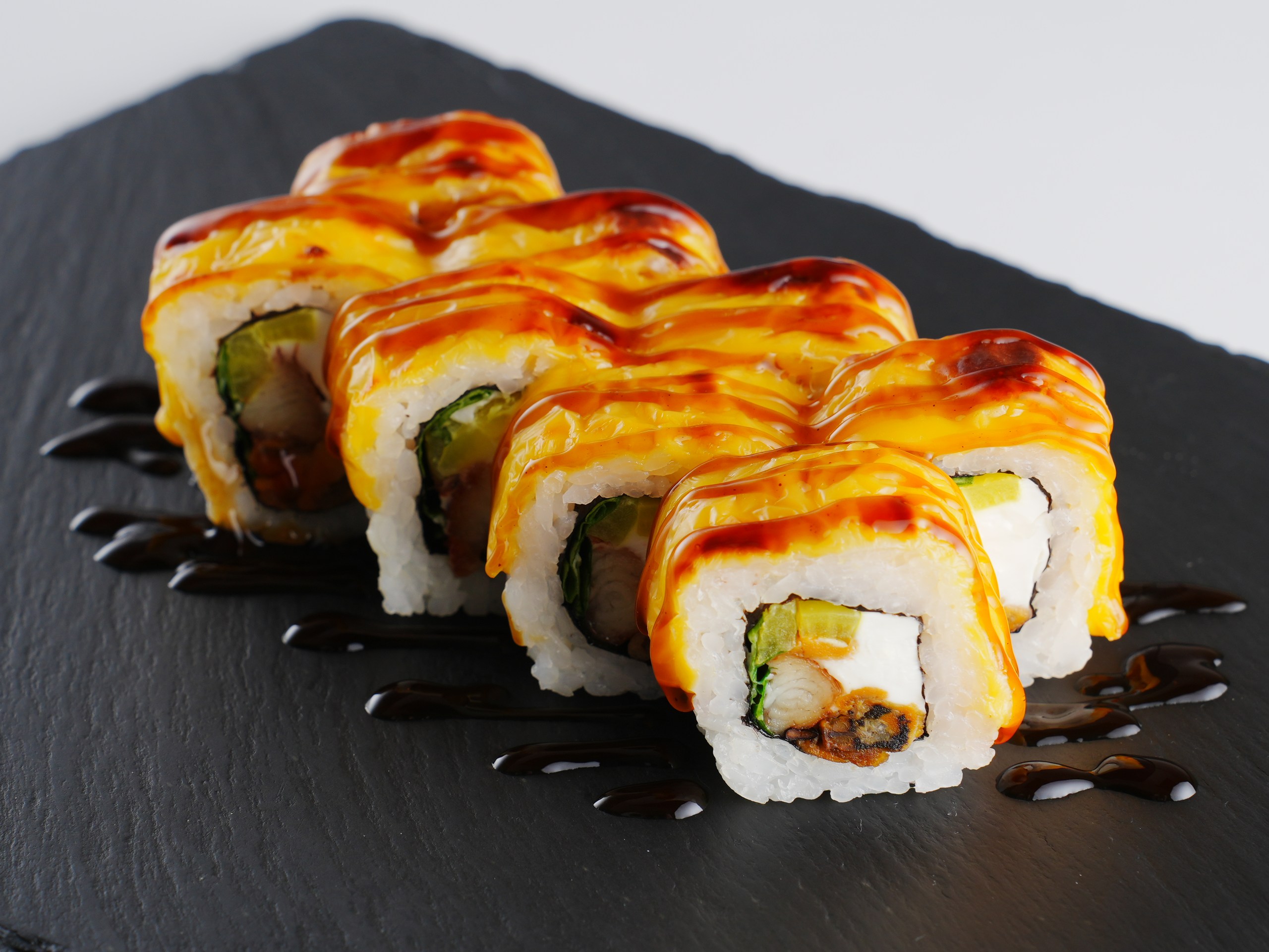 Порцию запечённых роллов «Хамагури» в 250 грамм также приготовят за 16 рублей. В их составе — угорь, жареные мидии, руккола, такуан, сыр чеддер и соус «Унаги».