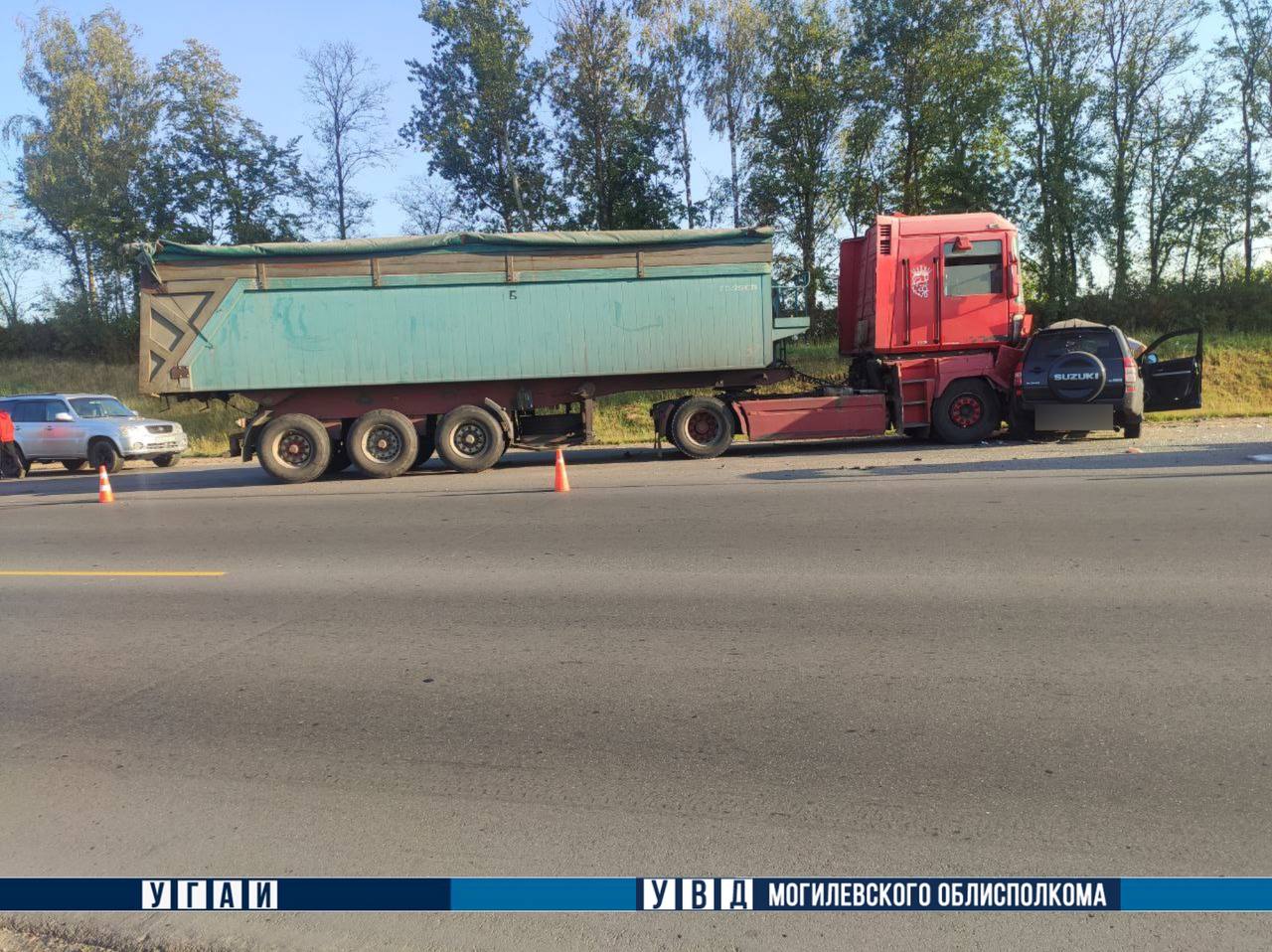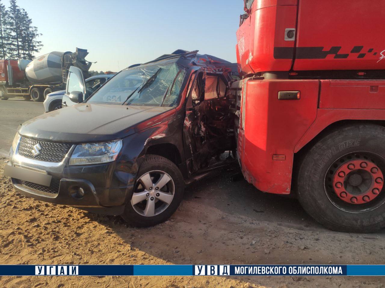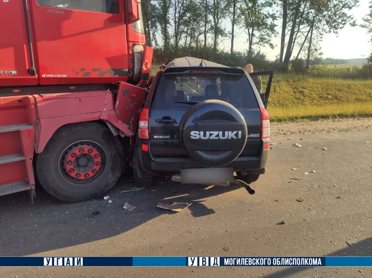 Сегодня, 10 сентября, около 7:10 на 21 километре а/д Р-122 Могилев-Чериков-Костюковичи произошло столкновение двигавшихся в попутном направлении автомобиля Suzuki под управлением 39-летней женщины и грузовой машины Renault Magnum, за рулем которой находился 47-летний мужчина.