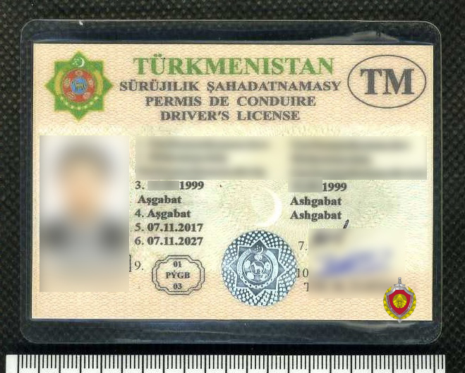 По результатам проведения исследования судебный эксперт пришел к выводу, что бланк водительского удостоверения Туркменистана изготовлен не предприятием, осуществляющим производство продукции данного вида. Все красочные изображения на бланке выполнены способом струйной печати, а защитный элемент (голограмма) имитирован.