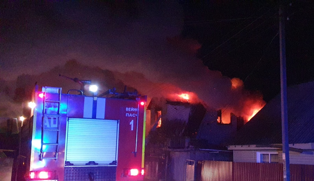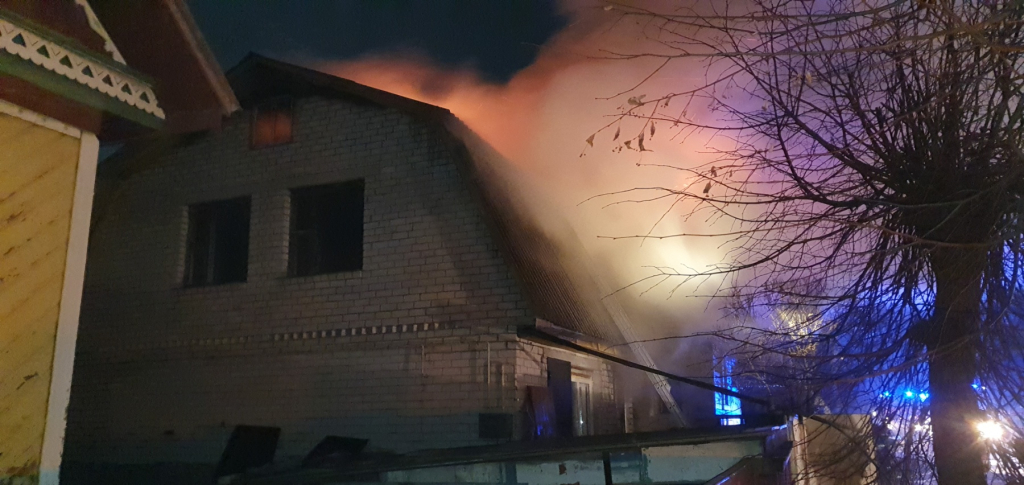 Прибывшие подразделения МЧС обнаружили горение внутри дома, из-под кровли и из дверей шел дым. Хозяйка, проснувшаяся от дыма и покинувшая дом через дверь, сообщила спасателям, что в доме есть человек.