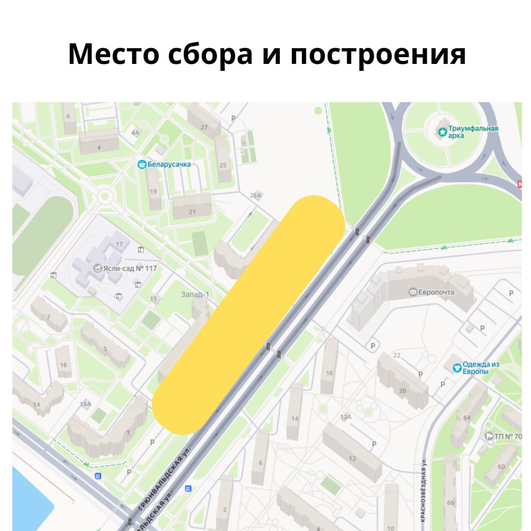 Принять участие может любой желающий. Для этого необходимо прибыть на место сбора участников — по правой стороне улицы Грюнвальдской (от улицы Тишки Гартного до улицы Минское шоссе) с 9:00 до 9:40. Дети допускаются только в сопровождении взрослых.