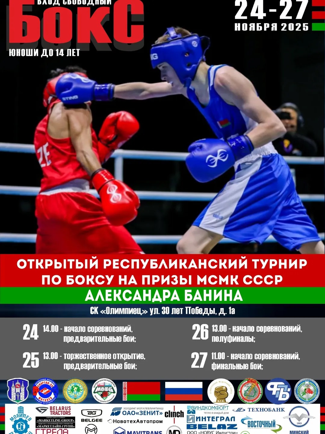 В Могилеве в СК «Олимпиец» с 24 по 27 ноября будет проходить открытый республиканский турнир по боксу на призы МСМК СССР Александра Банина. В соревнованиях примут участие юноши 2012-2013 годов рождения из Беларуси и России.