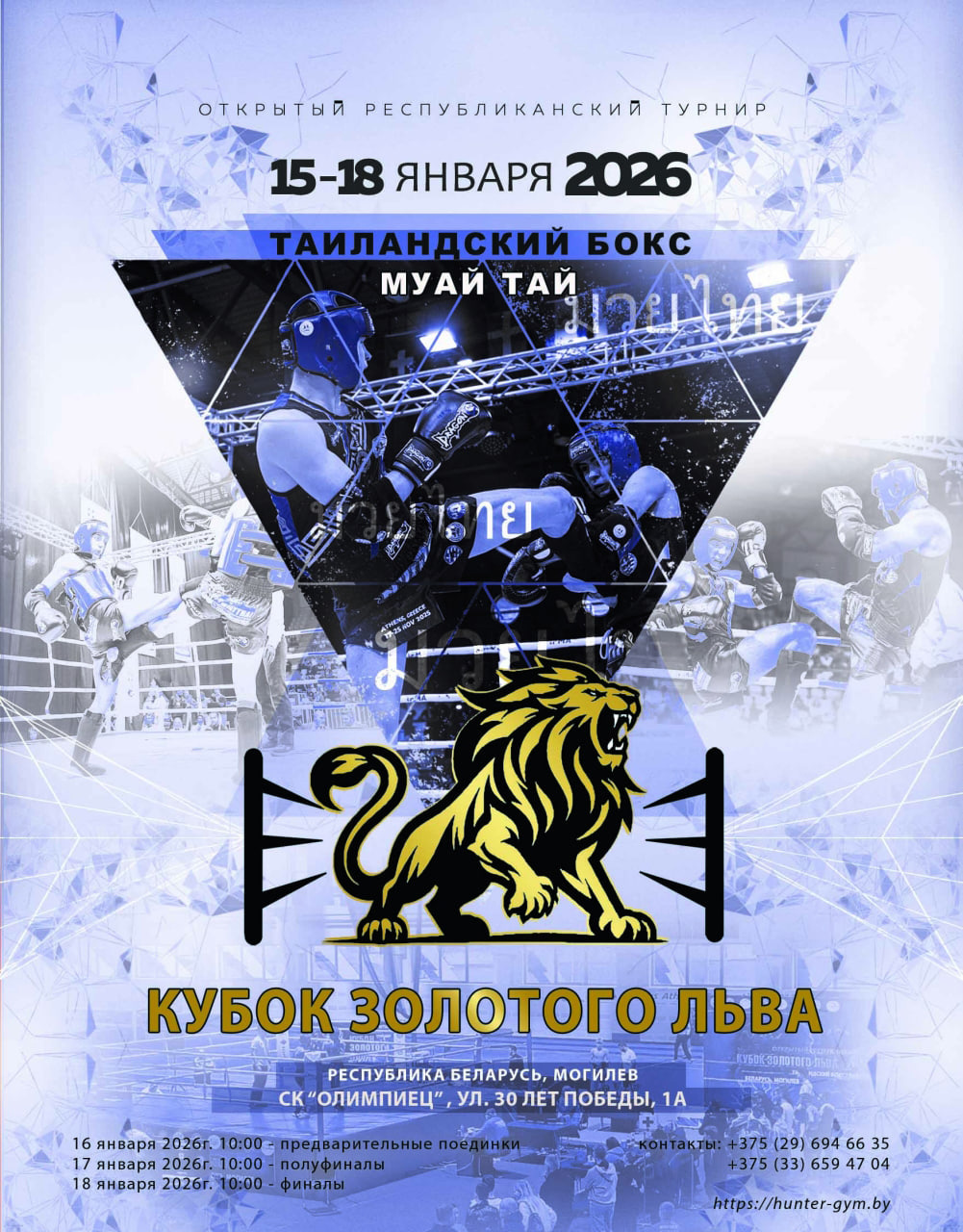 С 15 по 18 января в легкоатлетическом манеже спортивного комплекса «Олимпиец» пройдет традиционный открытый республиканский турнир по таиландскому боксу «Кубок золотого льва». Соревнования соберут более 500 сильнейших спортсменов из Беларуси и России.
