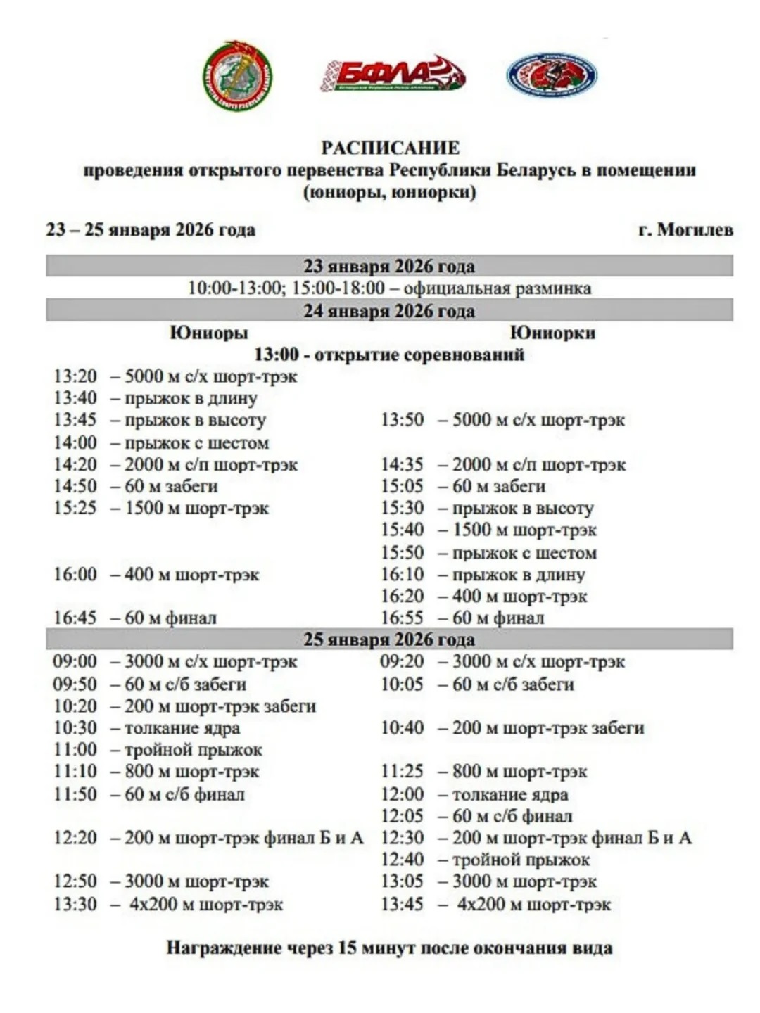 Открытое первенство Республики Беларусь по легкой атлетике пройдет 24-25 января в могилевском СК «Олимпиец» (ул.30 лет Победы, 1а).