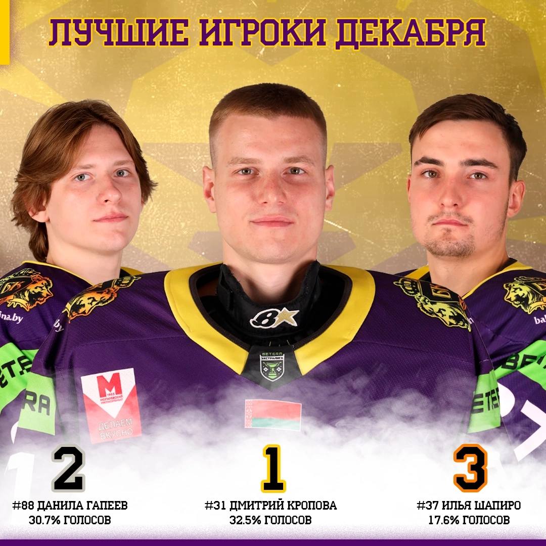Дмитрий Кропова признан лучшим игроком хоккейного клуба «Могилев» в декабре. Голкипер уже третий раз подряд забирает это звание. В декабре вратарь помог команде победить в 4 матчах при проценте отраженных бросков 91.7%.
