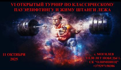 В Могилеве 11 октября в легкоатлетическом манеже спортивного комплекса «Олимпиец» пройдет VI Открытый турнир по классическому пауэрлифтингу и жиму штанги лежа среди мужчин и женщин.