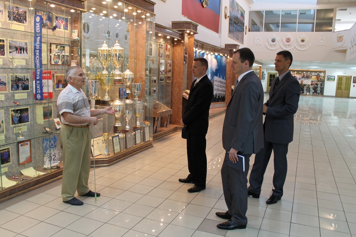 Белорусы ознакомилась с историей вуза, структурой, задачами, организацией учебного процесса различных категорий обучающихся, посетили учебно-лабораторный комплекс, музей, зал славы, учебно-научный комплекс судебной экспертизы. Им продемонстрировали ситуационный центр деловых игр и учений, центр судебной фотографии и видеозаписи, спецполигон по основам личной безопасности, комплексный криминалистический полигон, кабинет психофизиологической регуляции университета.