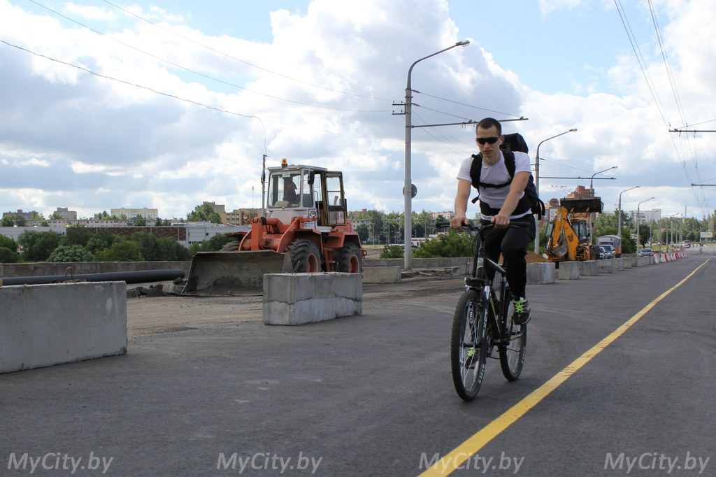 Пока для движения доступны две полосы, перекрытий больше не будет. Полностью объект будет готов в августе, объёмы там небольшие и их реализация не будет препятствовать движению по мосту.