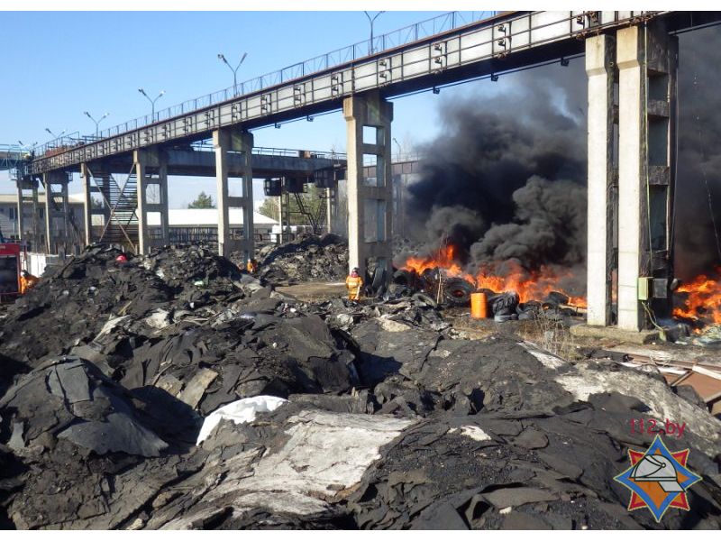 Для разборки резинотехнических отходов был привлечен погрузчик «Амкадор» ОАО «Могилёвоблресурсы». Горение локализовано в 17.10, ликвидировано — в 18.19. В результате пожара уничтожены отходы резины на площади 500 квадратных метров. Предполагаемая причина возгорания — занос постороннего источника зажигания неустановленным лицом.