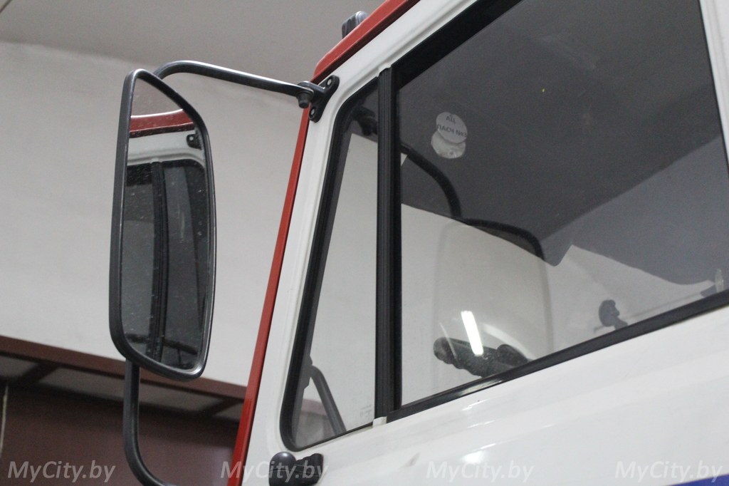 Помещение скромно расположилось в стороне от Любужского мини-рынка, словно не желая привлекать к себе особого внимания. Заезжаем на дворовую территории. Через смотровое стекло за нами уже наблюдает дежурный, затем он же встречает и в любой момент готов проводить нас в здание. Однако я не тороплюсь покинуть «гараж». Особенно хочется рассмотреть боевые машины. Проблесковые маячки, рукава, лежащая рядом экипировка, а через стекло виден «красный» внутренний телефон.