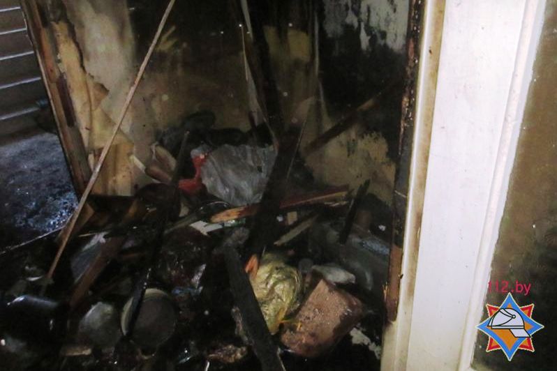 В результате пожара в прихожей уничтожен шкаф, повреждены пол и двери, закопчены стены и потолок. Эвакуация жильцов подъезда не проводилась. Пострадавших нет, сообщает mchs.gov.by.