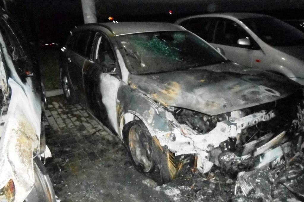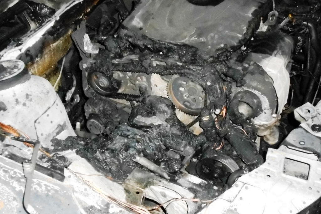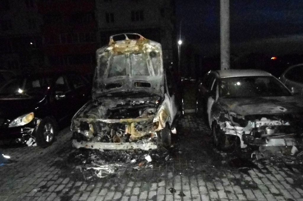 В результате пожара в автомобиле «БМВ», с которого и начался пожар, повреждён моторный отсек, крылья, капот, салон. В «Опеле» огонь уничтожил моторный отсек, крылья автомобиля и капот. В автомобиле «Мерседес» огнём повреждён бампер, капот, дверь. Пострадавших нет.