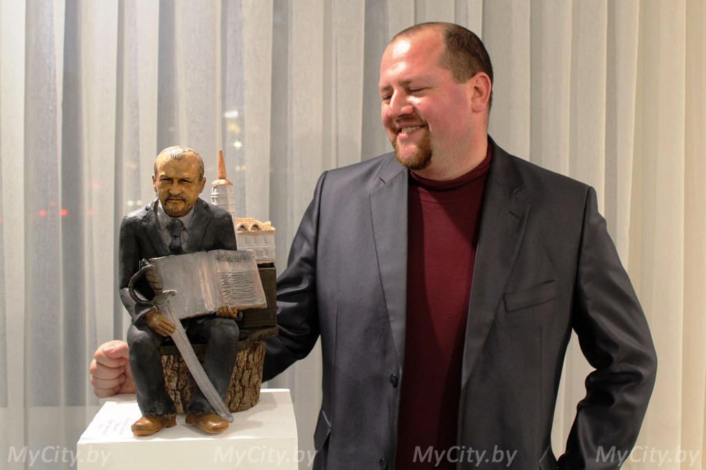 Среди выставленных работ можно найти и скульптуру, изображающую директора Музея истории Могилёва Алексея Батюкова. «Об этом произведении я узнал только в день открытия экспозиции и был приятно удивлён, — улыбается Алексей Николаевич. — Интересно посмотреть на себя со стороны, тем более меня рисовала только сестра в детстве и чуть позже — дети. Я знаю, что у Владимира Поховцова есть традиция, дарить такие работы товарищам перед их выходом на пенсию, поэтому получить в подарок эту скульптуру не тороплюсь».