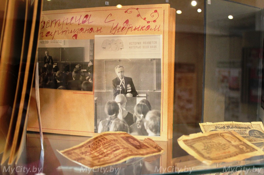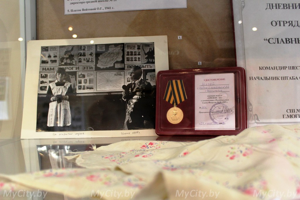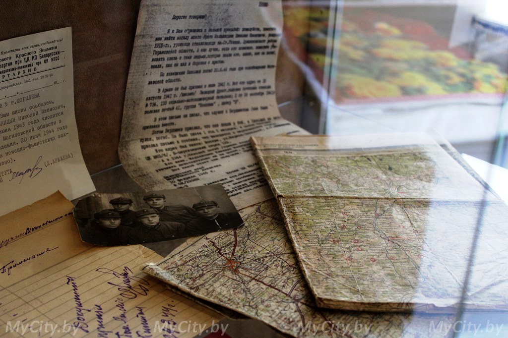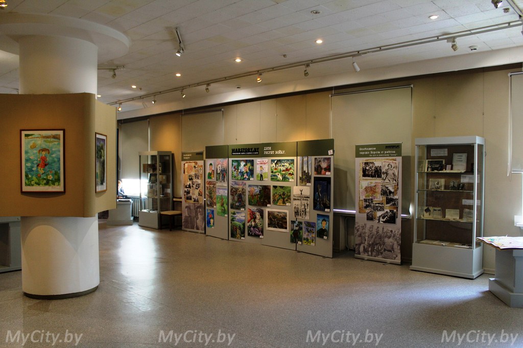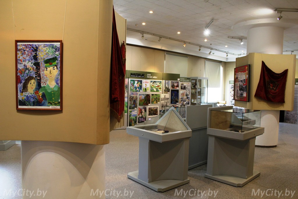 Как рассказала корреспонденту сайта старший научный сотрудник музея Александра Буракова, условно выставку можно разделить на несколько блоков. Здесь представлены стенды с фотографиями и документами, далее расположены рисунки учеников могилёвских художественных школ, материалы музеев средних школ №№ 5,11, 22, 32, 33 и 34 и экспонаты из фондов краеведческого музея.