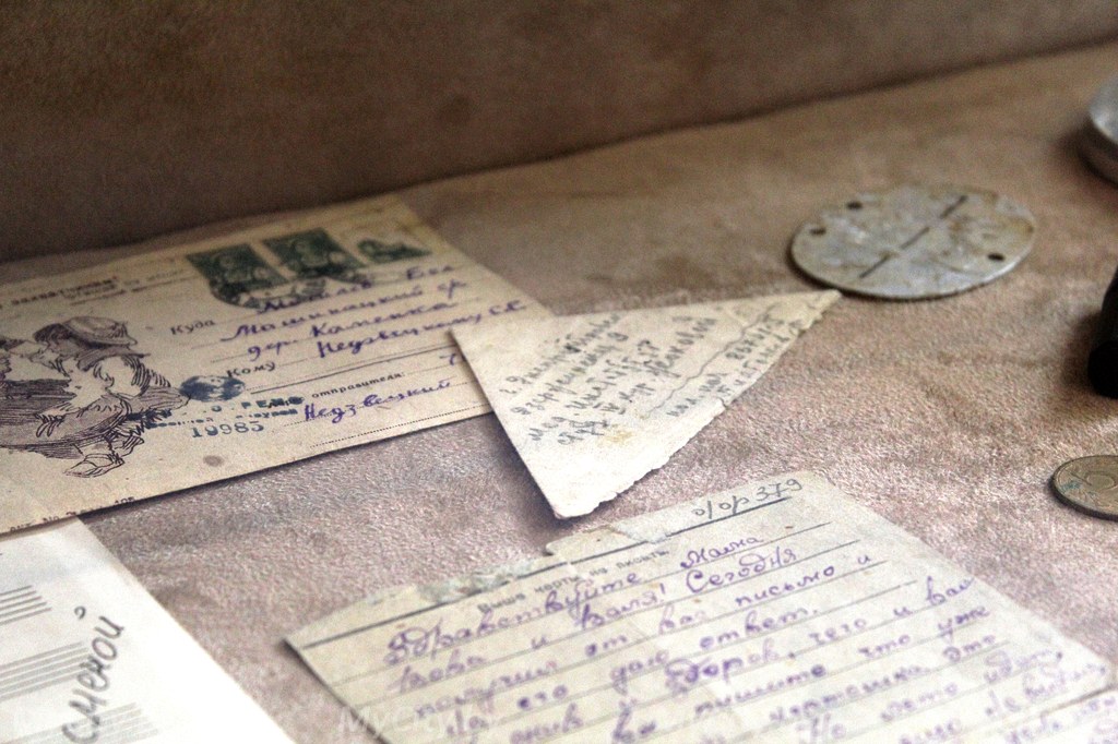 С помощью экспозиции посетители могут взглянуть на события тех лет глазами детей войны и современных детей. «Многие забывают, какой ценой досталось нам мирное небо над головой, — отметила собеседница. — Об этом нужно напоминать. Мы постарались подобрать экспонаты так, чтобы передать подвиги и ужасы, через которые прошли подростки того времени. Например, письма Тани Карпинской, её оригинальные фото. Есть детские вещи, найденные в местах захоронения расстрелянных мирных граждан. Есть пионерское знамя, которое детки прятали в период оккупации».