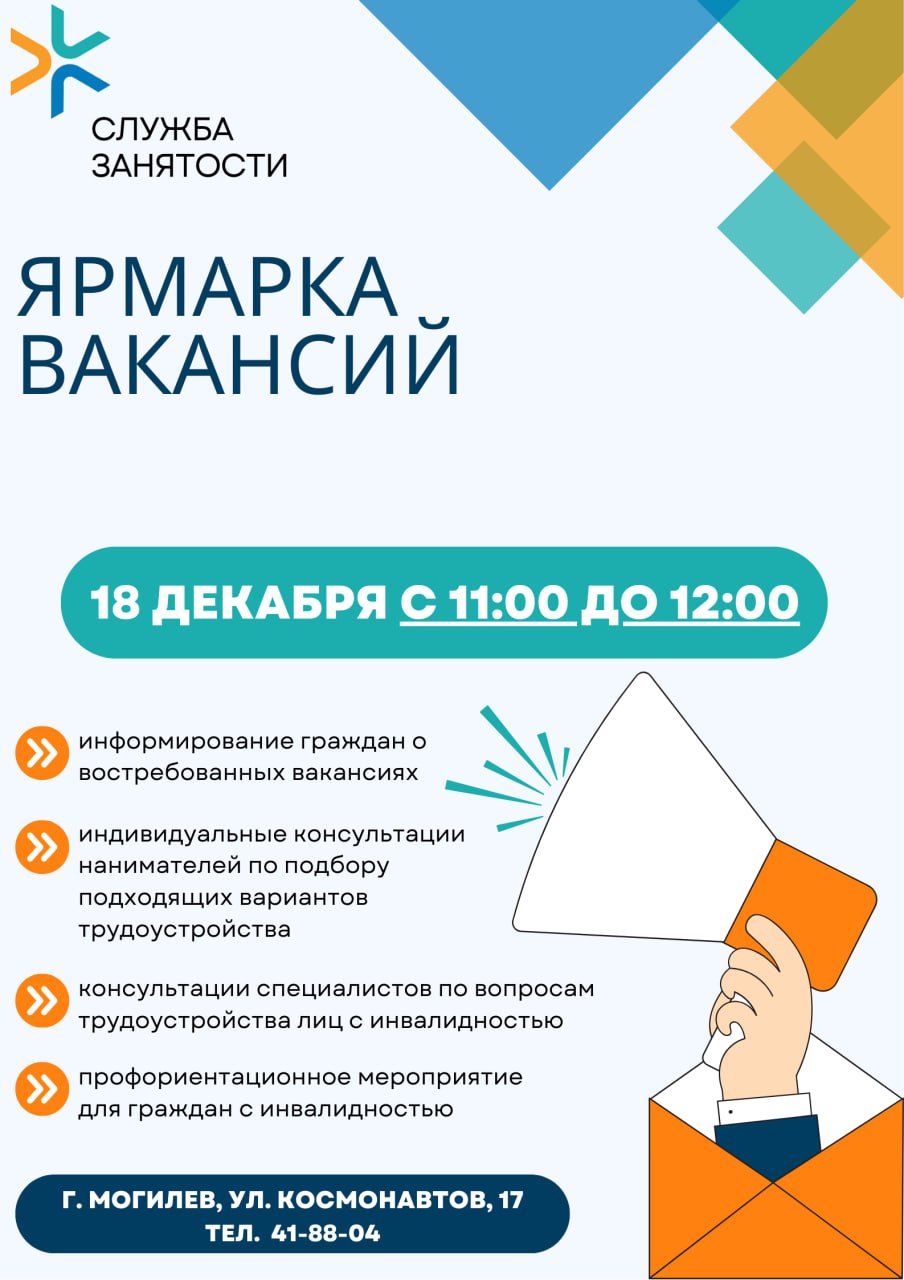 Ярмарка вакансий для незанятых граждан и граждан, не имеющих постоянной работы, пройдет в Могилеве в четверг, 18 декабря.