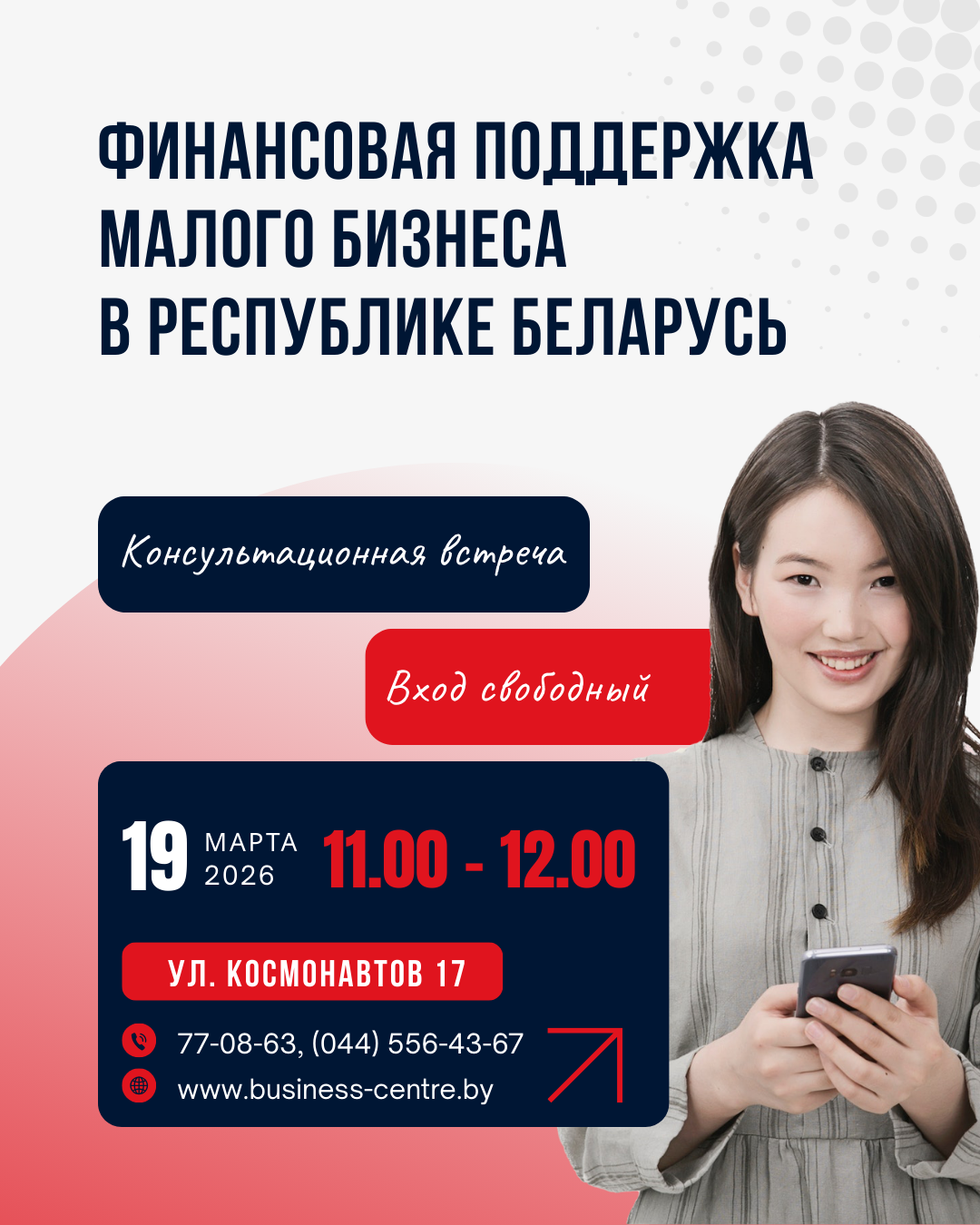 Консультационную встречу о мерах финансовой поддержки малого бизнеса в Республике Беларусь проведут специалисты Могилевского городского центра развития малого предпринимательства в четверг, 19 марта.