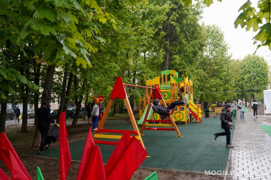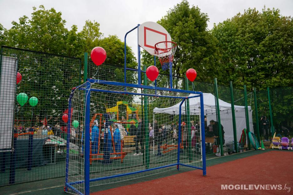 В Могилеве в День семьи торжественно открыли новую многофункциональную детскую игровую площадку. Она расположилась во дворе одного из жилых домов на проспекте Мира. Здесь есть огороженная площадка с футбольными воротами и баскетбольными кольцами, деревянный игровой комплекс с горками, качели, турники и тренажеры. На всей территории игровой площадки уложено безопасное прорезиненное покрытие.